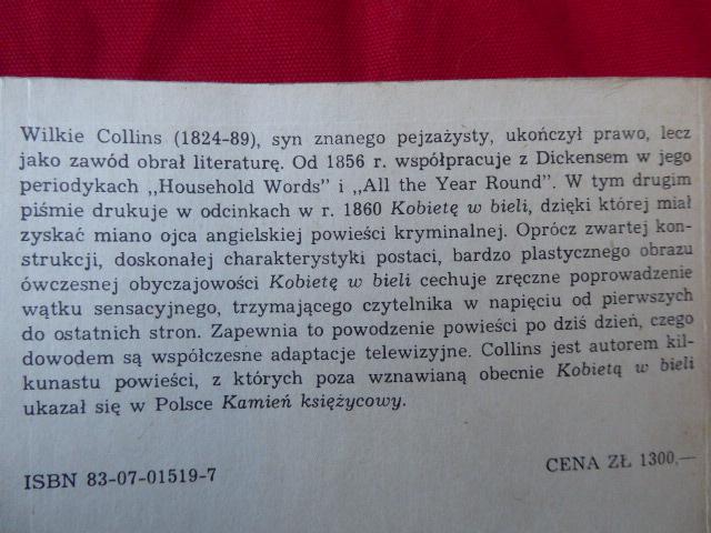 61. Wilkie Collins - Kobieta w bieli - 1998, miękka oprawa, stan db+, KT 12,00 Kobieta w bieli – Wikipedia, wolna encyklopedia Jedna z pierwszych powieści kryminalno-sensacyjnych, powszechnie traktowana jako jedna z najpiękniejszych tego gatunku! Mistrzowski przykład fikcji detektywistycznej z bohaterem, Walterem Hartrightem, stosującym wiele technik śledczych późniejszych prywatnych detektywów. Użycie wielowątkowych relacji zawdzięczamy prawniczemu wykształceniu Collinsa, który sam wskazuje we wstępie do książki: „Historia tu przedstawiona będzie opowiedziana przez więcej niż jedno pióro, jak historia przestępstwa przeciw prawu jest opowiedziana w sądzie przez więcej niż jednego świadka”. Walter Hartright, młody nauczyciel rysunku, podczas wędrówki z Hampstead do Londynu późnym letnim wieczorem spotyka tajemniczą kobietę ubraną w biel, najwidoczniej w tragicznym położeniu. Pomaga jej dotrzeć do Londynu, ale później dowiaduje się, że uciekła ona ze szpitala psychiatrycznego. Następnego dnia Hartright podróżuje na północ do Limmeridge House, ponieważ został zatrudniony jako mistrz rysunku dla mieszkańców tego domu, czyli Laury Fairlie, bratanicy gospodarza domu, i Marianny Halcombe, jej oddanej przyrodniej siostry. Kilka dni po swym przybyciu Hartright uświadamia sobie, że Laura jest zadziwiająco podobna do kobiety w bieli. Ta w dzieciństwie mieszkała przez jakiś czas w Cumberland i bardzo przywiązała się do matki Laury, która zawsze ubierała ją na biało. Walter i Laura szybko zakochują się w sobie. Jednakże Laura obiecała ojcu na łożu śmierci, że poślubi sir Parsivala Glyde’a, więc Marianna – wiedząc, że Laura, mimo uczucia, spełni wcześniejsze przyrzeczenie – doradza nauczycielowi, by opuścił Limmeridge… 62. KT 18,00 stan db+ większy format Czy Robert Johnson naprawdę sprzedał duszę diabłu? Dziennikarze muzyczni Gary Graff i Daniel Durchholz biorą na warsztat plotki, półprawdy i pomówienia, a także mity i legendy, którymi obrosły kariery sławnych muzyków rockowych. Docierają, o ile to możliwe, do źródeł każdej pogłoski, fałszywe obalają, a te potwierdzone szczegółowo opisują. Szanowny czytelniku, w niniejszej książce czekają na ciebie: seks (czy chłopcy z Led Zeppelin naprawdę zaspokoili fankę żywą rybą?),narkotyki (czy Beatlesi naprawdę wypalili jointa w pałacu Buckingham?) i rock and roll (czy album The Dark Side of the Moon naprawdę idealnie zgrywa się z filmem Czarnoksiężnik z Oz?). Oprócz tego trafią się również mity okołomedyczne (zawartość żołądka Roda Stewarta i żebro Marilyna Mansona),kulinarne (czy Alice Cooper naprawdę gustował w żywych kurczakach, Ozzy Osbourne w nietoperzach, a Frank Zappa... nie, to się nie nadaje na okładkę),w ten czy inny sposób powiązane z Hadesem (Paul McCartney zginął, za to Morrison, Elvis i Tupac żyją i mają się dobrze),a nawet kilka takich, które zdają się mieć w sobie ziarno prawdy (czy Keith Richards naprawdę wciągnął kreskę koki wymieszanej z prochami swojego świętej pamięci ojca, o co chodziło z zespołem Van Halen i M & M’sami i czy komiks o grupie KISS naprawdę wydrukowano krwią muzyków?). Autorzy pochylają się nad niemal sześćdziesięcioma rockandrollowymi legendami (zapuszczając się przy tym na terytorium country i popu),które rozbierają na czynniki pierwsze, ujawniając tym samym mitotwórcze mechanizmy rządzące światem muzycznej plotki. zdjęcie i opis z netu