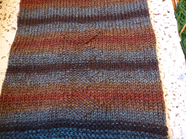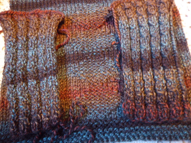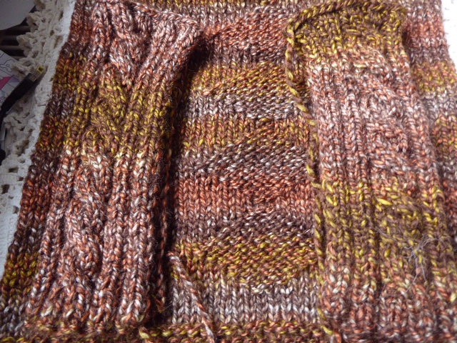 D4. Zapach ziemi Komplet ( komin + mitenki)z włóczki - nowy, ręcznie robiony, 30% wełna, 70% akryl, YarnArt Everest, KT 75,00 Kolor przekłamany. W rzeczywistości ciemniejszy, mniejsze kontrasty między kolorami Komin - wysokość 37 cm, szerokość 31 cm - KT 54,00 Mitenki - długość -19 cm . Otwór na kciuk do ustalenia z kupującym - KT 24,00