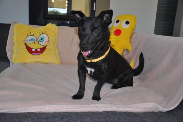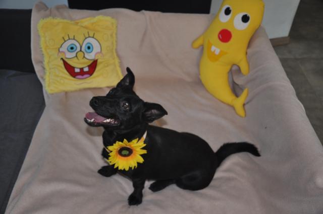 Nie mogłam, no po prostu nie mogłam jej nie zabrać. Przecież to jak zaginiona siostra mojego Ronisia :). Zobaczyłam na FB że mała siedzi u kogoś w kojcu po kilkudniowej tułaczce w okolicy. Przywiozłam i już wiem że będzie ogromny problem z jej wyadoptowaniem. I to wcale nie z jej strony. Oto Ona - Mimronka jeszcze bezimienna.