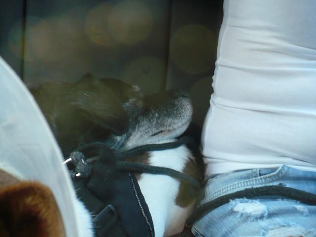 Za to w poniedziałek porwanie do Krakowa do WSPANIAŁYCH, PRZECUDOWNYCH Ludzi i Psiego Przyjaciela Kaloszka. Państwo zapsieni od zawsze, psy zawsze bezdomne, najbardziej potrzebujące pomocy. Do niedawna jeszcze były 3 ale dwa odeszły ze starości i smutno z jednym. Jak Kaloszek wychodził z domu zawsze oglądał się za siebie i czekał na pozostałych Towarzyszy. Do wczoraj nie miał na kogo czekać. Państwo ok. 50 -tki, dom bez dzieci, mieszkanie dwupoziomowe w apartamentowcu - szczelnie ogrodzony na Woli Justowskiej w Krakowie. Kaloszek ma 7 legowisk :) w zasadzie w każdym pomieszczeniu, Państwo spacerują po Błoniach i nad rzeką Rudawa. Rambuś, który będzie miał na imię Kafelek zapozna ważne osobistości z Krakowa - Panią Annę Dymną, Porucznika Borewicza :D, będzie spacerował z psiakiem Pana Jerzego Stuhra. Tak się idealik ustawił :D Państwo jeżdżą na wakacje tylko do takich hoteli gdzie są przyjmowani z psiakami. ZAWSZE jeżdżą wszyscy razem. Mają plecaki na psiaki na piesze wędrówki, oponki na żagle i inne cuda wianki. Oczywiście nie musiałam tłumaczyć o adresówkach, daniu psu spokoju przez pierwsze dni, nazywaniu Rambusia na razie jeszcze Rambusiem.....Oni to wszystko wiedzą. Super Ludzie. Rambuś jedzie z przyklejonym do swojej pupy Kaloszkiem. Kaloszek ma ok. 13 lub więcej lat, jest z krakowskiego schroniska od 7 lat u Państwa.Charakter Rambusiowy. Pierwsze kroki na krakowskiej ziemi