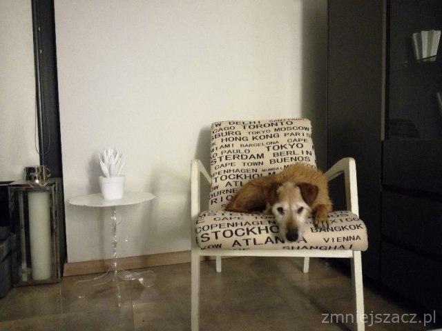 7. Ajka nadal ma problemy z zachowaniem czystości i pilnuje michy. Śpi już na fotelu ;) Faktura