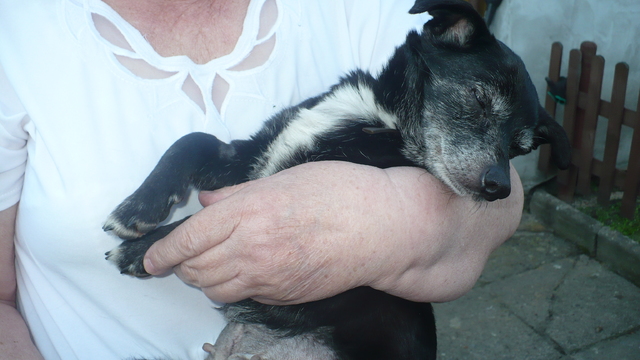 Tropek zdrowy, zaszczepiony, dostał kropelki na kleszcze. Waży 6.5 kg, był bardzo grzeczny u weta - ani "kwiknął" :) przy zastrzyku. Rozmawialam z Tolą - ZEA pokryje koszty weta. Trochę się rozszczekał - ale w granicach przyzwoitości, jak się cieszy to chrumka, jest jeszcze troszkę spięty jak go biorę na ręce, nieruchomieje - widać nienauczony przytulania. Dziś bylo zapoznanie z kotem - i kot i Tropek cali. Ukradł mięcho na grilla.Tzn 1 kawałek mięcha na grilla. A łykał w biegu :)