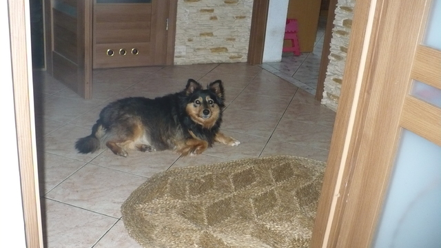 Rozmawiałam z Panią Halinką. Jest dobrze, co prawda rano chapnęła Pana ale NIC TO. Jak wczoraj wychodziliśmy to zapomniałam napisać że Mufcia schowała się za Panią co uważam dobrze rokuje :). Wczoraj nie sikała więc Pani zapobiegawczo zwinęła dywan a Mufcia elegancko załatwiła swoje sprawy na podłogę. Spala koło Łóżka Pani. Dziś już ogon do góry, macha nim cały czas, zasuwa po ogrodzie, co prawda mieli Państwo problem z zapięcie smyczy ale sobie poradzili przekupstwem. Przekupna Mufka jest straszliwie, dziś już prosiła na dwóch łapkach ale Pani jest nieugięta i daje jej smaczki jak zasłuży. Jak dała sobie jednak tą smycz przypiąć to wtedy dostała. Mufcia i tak za dobrze wygląda więc nie można jej utuczyć. Pani dała 100 zł za transport. Zaraz zrobię rozliczenie. A zdjęcia wstawię jak mój sznowny mąż wróci z pracy i zlokalizuje aparat, który ponoć GDZIEŚ położył. Nie wiem gdzie jest GDZIEŚ wrrrr....