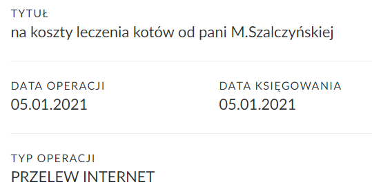 Pozostałe propozycje podziału: 150 zł dla zamojskiej owczarki od Jo37, która jest u Murki, https://www.dogomania.com/forum/topic/352793-stara-owczarka-z-chorym-uchem-ma-szansę-na-wyjście-ze-schroniska-od-dzisiaj-ma-na-imię-andrea-dla-przyjaciół-andzia-czy-damy-radę-jej-pomóc/page/6/ 150 zł dla Amberka, który zaginął i się szczęśliwie odnalazł https://www.dogomania.com/forum/topic/352841-zrezygnowany-chudziutki-amberek-z-prośbą-w-oczach-jak-miałam-przejść-obojętnie-ma-szansę-na-nowe-życie-czeka-na-waszą-pomoc-kto-poprowadzi-dalej-wątek-kto-pomoże/page/45/?tab=comments#comment-17701787 100 zł na dług Szczebrzeszyńskich kotów od Dory https://www.dogomania.com/forum/topic/78989-długi-w-lecznicyw-hotelikuza-karmębezdomne-szczebrzeszyniaki-prosza-o-pomoc/page/701/ 100 zł dla suni z pola od kyioshi, która ma teraz operacje https://www.dogomania.com/forum/topic/352687-sos-rodzinka-z-podkarpackiej-wsi-mały-antoś-najpierw-w-dt-madie-teraz-w-ds-pod-krakowem-mamusia-w-dt-u-kasiainat-zbiera-na-operacje/page/11/ 103, 71 zł na dlug Fudiego od Ali123, który jest u Murki: https://www.dogomania.com/forum/topic/138782-zajrzyj-a-przekonasz-się-że-warto-pomagaćkarolek-bambo-łatka-plamkapapilonek-i-jeżynka-już-bezpiecznena-pomoc-czekają-kolejne-bezdomniaki/page/163/ Oczywiście, jeśli się zgodzicie to powklejam wątki teraz tylko tak orientacyjnie, czekam na decyzje, a może macie inne propozycje?