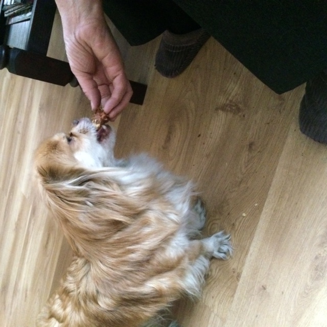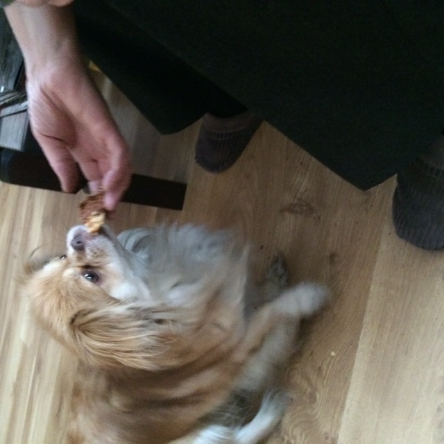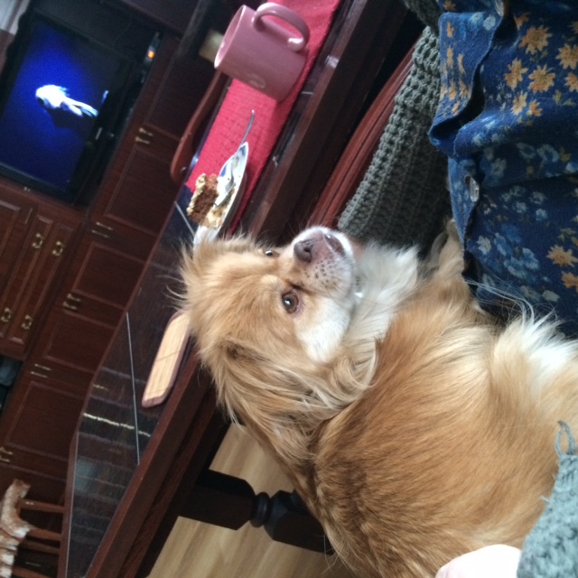 Dzień dobry :) Jak to mówią cierpliwi będą nagrodzeni :) Wczoraj wpadłam na kawkę przedpołudniową. O ja Cię... te piski... powitanie jakby kto gumowa zabawkę deptał i deptał... Muszę powiedzieć, że Helci bardzo smakował świeżo upieczony serniczek. To ogromny dla mnie komplement, bo jak wiadomo Helcia byle czego nie jada :) A tu sznupała po rękach w poszukiwaniu okruszków. -