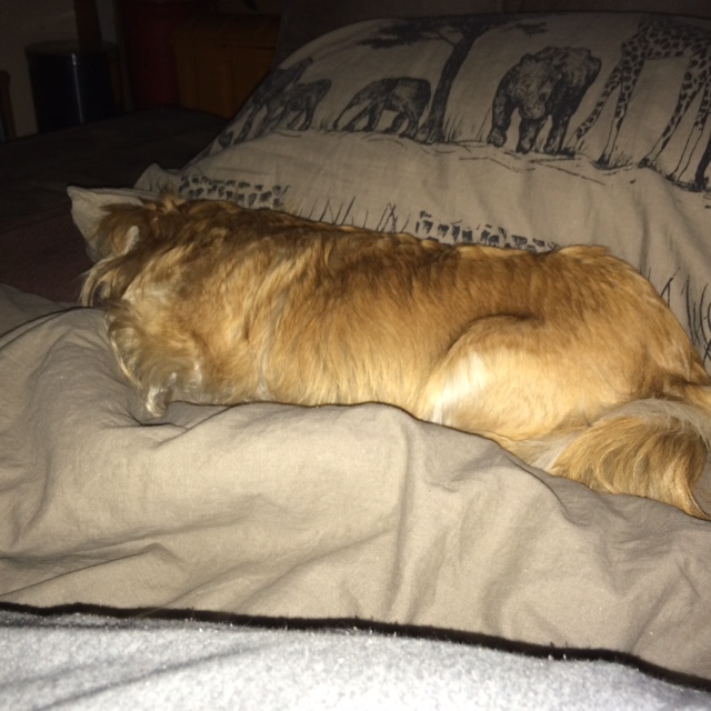 Noo… Wreszczie chwila przerwy to sklecę kilka zdań J Może najpierw popołudnie. Był u mnie mój znajomy, Helcia się chyba zakochała…. Nie powiem, jest bardzo przystojny, ale żeby tak nachalnie faceta drapać „tu mnie głaskaj, tu mnie smyraj” to nawet Ziutka była zdiwiona… Ale jest to jakiś sposób… Została wygłaskana i wytarmoszona do woli… czyli cos jest w haśle, że „grzeczne dziewczynki idą do nieba, a niegrzeczne maja niebo na ziemi”… Pichciliśmy spaghetti i takie łyse makarony bez ostrego sosu miały fest branie… Dwa małe krokodyle z otwartymi paszczami śmiesznie wyglądały. Ale Ziutka ma ‘obcykane” wciąganie tych 40 cm nitek, a Helcia w mig podłapała. Jak wpuszczanie ciasta do maszynki do ciasteczek. Otwór otwarty i pełna synchronizacja podajnika z odbiornikiem J tylko produkt końcowy… no nie są to bynajmniej ciasteczka ;) W ogóle Helcia u mnie ładnie je. Maja oddzielne miseczki i się nic a nic na siebie nie oglądają. Fajnie się dogadują z Ziutką, chociaż muszę przyznać, że Helcia się wszystkim cieszy i nie odstępuje mnie na krok, a Ziutka to przezywa… smutna chodzi, więc poświęcam jej nawet więcej uwagi niż zwykle. Nie chcemy przecież, żeby się Ziutka martwiła ;( O pierwszym wyjazdowo- wczasowym noclegu J Najpierw się poukładała Ruda na kocyku. Taki tam sobie leży na kanapie, lubimy sobie nóżki zapakować i z kawka i książeczką poleżakować. Od razu wpadł Helci w oko… najpierw tak grzecznie, na płasko, nóżni razem… panienka z dobrego domu… a potem pomotała, pobuliła na całego i leży zamaskowana… niewinna.. …Dopiero jej się oczka zaświeciły jak łóżko pościelone zobaczyła… A spróbować trzeba wszystkiego, wiec i na poduszce i w nogach… na plecach, na boku, na brzuchu… wszystkie wariacje dozwolone. Ale jako aureola się nie pchała… Ot ona już tam wie kto na aureole zasługuje, a kto niekoniecznie ;) Ze 3 – 4 razy mnie budziła w nocy, bo co się na bok odwróciłam to ona już sobie myślała, ze będziemy się miziać… o nie….Ziutka się honorem uniosła i poszła na swój materacyk. A ja co oko otwieram to Helci oko już na mnie patrzy i to w odległości max 20 cm z tendencje do skrócenia… Nie wiem co się Rudej śniło, bo to wiadomo, pierwsza noc w nowym miejscu - się spełni…;) Zaraz fotki :) -
