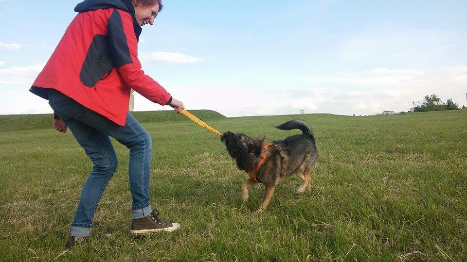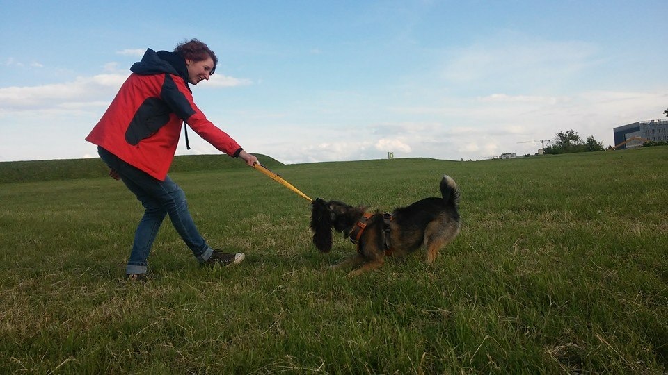Witajcie :) Mijają właśnie 4 miesiące, jak Chwast vel Pokrzywa vel BuhBuh jest u mnie. Tzw. "zdziś" w załączniku. U Pokrzywy wszystko w porządku, jest zdrowa, w formie, chyba szczęsliwa :) Trochę zgrubła, bo była 2 tygodnie w Toruniu z tatą i się windą rozbijała zamiast schodami na krakowskie poddasze zasuwać, ale już powoli pracujemy nad powrotem do formy :) Od marca zaczynamy poważne treningi obedience (postaram się zdawać relacje) oraz muszę przepracować szczekanie, które wylazło nie wiadomo skąd i dlaczego. Niestety suczeł zaczęła bardzo nerwowo szczekać na rowerzystów/biegaczy/duże psy i wszelkie nagłe, niespodziewane hałasy. O ile atak szczekania na quad w cichym lesie jestem w stanie zrozumieć, tak szalony szczek na rowerzystę, którego widziała wystarczająco wcześniej - już nie. Staram się ją skupiać na sobie, uprzedzać potencjalne "przykre spotkania" (nie stosuję metody - jedzie rowerzysta, zmieniamy trasę - Kraków jest na tyle duży, że Pokrzywa MUSI się przyzwyczaić do tych wszystkich stresujących sytuacji), ale niestety nadal wychodzą jakieś jej stare lęki. Spokojnie z nią wychodzę rano przed 6,kiedy wszyscy śpią, ale już się boję wiosny i tych wszystkich rowerów, hulajnóg, rolkarzy, biegaczy.... Każdy spacer poza tym porannym to dla mnie i dla niej ciężka praca teraz - żeby w czas zobaczyć "niebezpieczeństwo" i odpowiednio zareagować. Smaczków schodzi dużo. Jak już się nakręci na szczekanie, to jest nieodwoływalna. Nie atakuje, tylko szczeka, wyszczeka się i jest spokój, ale robi to w najgorszy możliwy sposób psa podwórkowo/łańcuchowego i ludzie mają prawo się jej obawiać (jeden Pan, na którego naszczekała bez powodu pogroził, że zadzwoni po Straż Miejską :(( I co z tego, że wyglądał tak, że nawet ja się go bałam - pies nie powinien tak nikogo oszczekać (oprócz może włamywaczy :D Myślałam, że może ja coś źle robię? Jest nieszczęśliwa? Ale naprawdę nie wygląda. Czytałam o teorii, wg której u psów po adopcji po 6-8 tygodniach wychodzą ich prawdziwe charaktery i lęki. U Pokrzywy by się to zgadzało, bo właśnie po takim czasie zaczęła szczekać. Pogłębiło się to teraz w Toruniu, bo tata z nią nie pracował (z różnych względów - nie jest tzw. psiarzem, chociaż Pokrzywensa kocha :)) Jeśli macie, to proszę o porady :) Obi tego nie wyprostuje a naprawdę kusi mnie, żeby samej to przepracować zamiast od razu lecieć do behawiorysty - zwłaszcza, że mamy z Pokrzywą naprawdę niesamowitą więź.