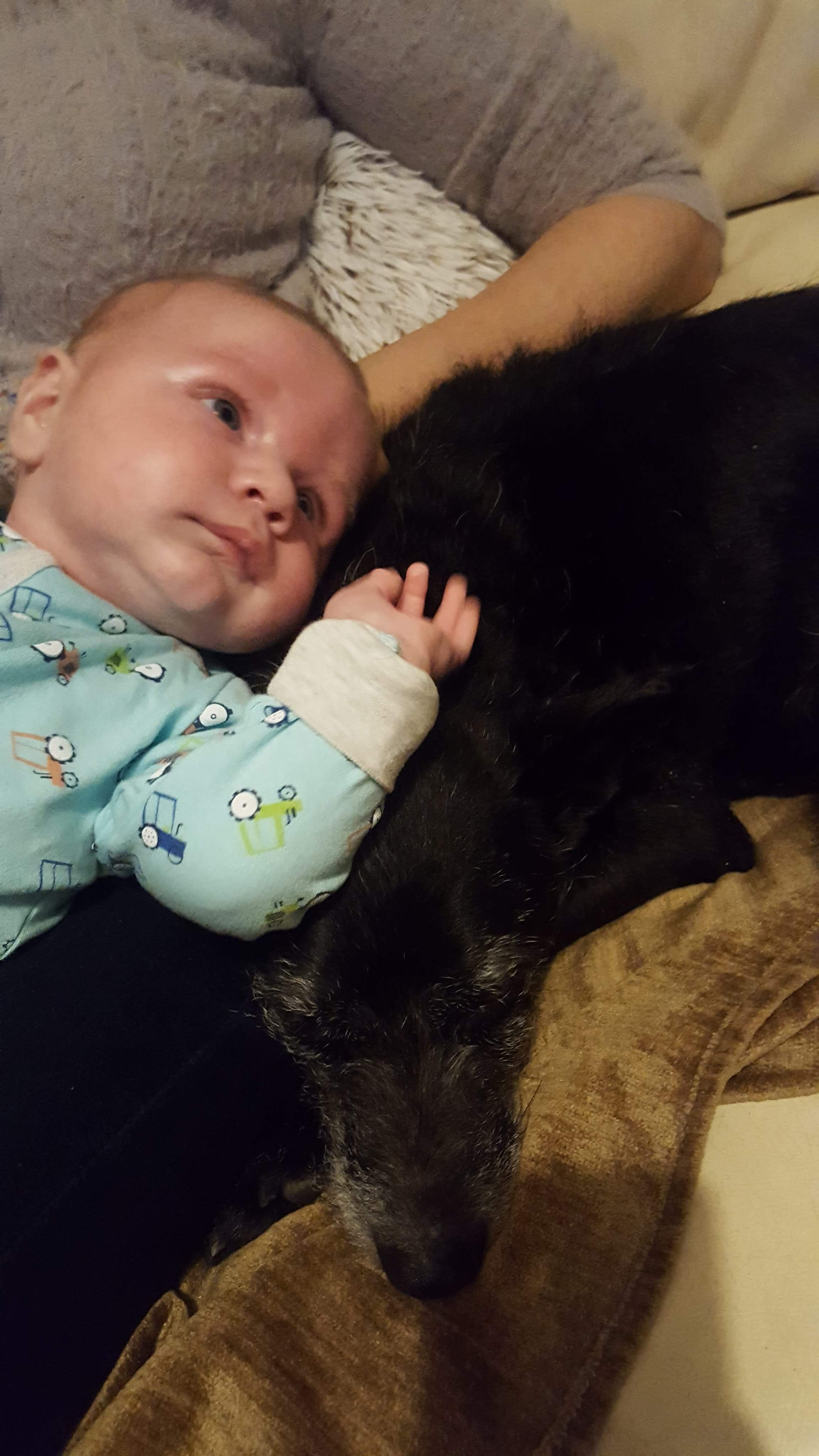 Mama może zamieszczać kiedy Michaś śpi :) co prawda w ciągu dnia ma turbodrzemki, ale dajemy rade. Heniutek ostatnio na spacerze bronił swojej Pani jak lew. Pojawił sie inny piesek, który chciał im towarzyszyć w spacerowaniu a Heniek stawał między nim a mamą i oddzielał swoją prywatną pańcie własnym ciałem :) -