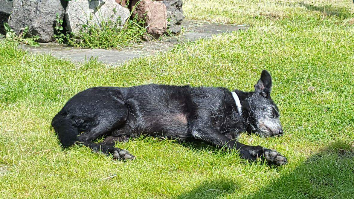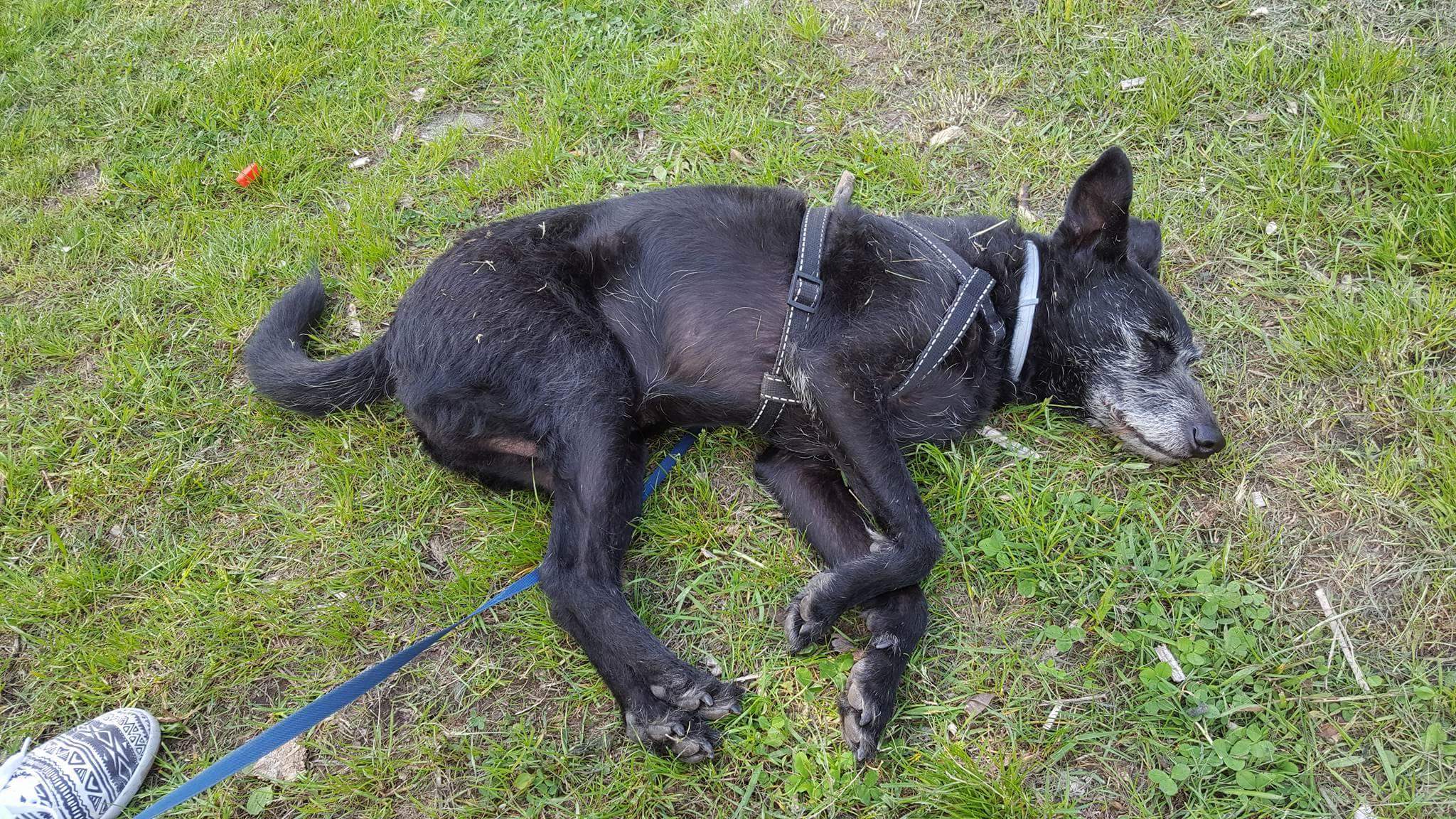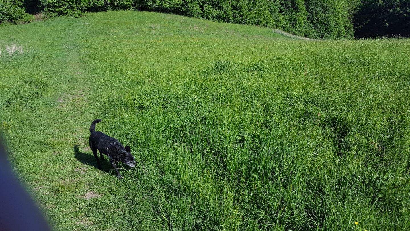 Każdy wie, że w pewnym wieku trzeba odpoczywać podczas spaceru. Ciepełko, cień, lekki wiaterek... Ja się położe a Ty pilnuj niewolniku... -