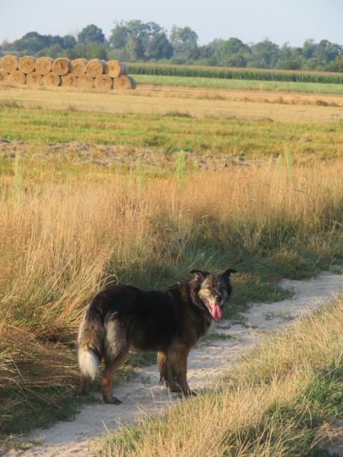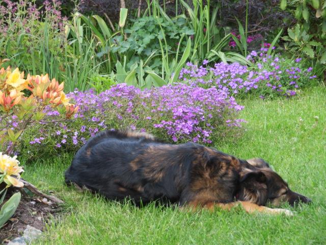 Witaj Radku, sunia miewa się dobrze, obecnie zdrowa i korzysta z wiosny w pogodne dni. Byłyśmy na działce dwa tygodnie temu i miałyśmy sporo słońca. Czekała nas tam niespodzianka bo puste od kilku lat gniazdo bocianie na działce okazało się zamieszkałe przez parę bocianów co mnie bardzo ucieszyło. Kosiłam trawę i pracowałam w ogródku a Yoko - tak jak na załączonych zdjęciach. I "nasze" bociany.