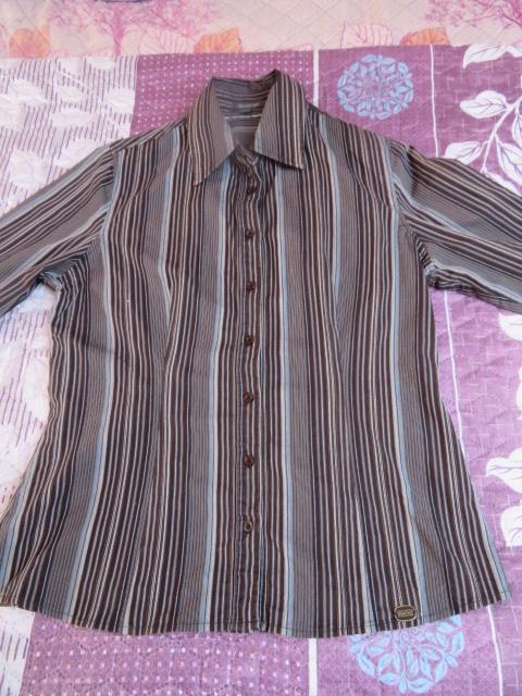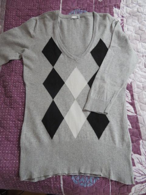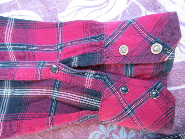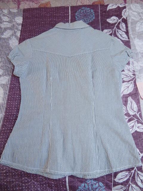 Dodane: 22 a. Bluzka damska morelowa. Ciekawa przy szyi. Brak jednego koralika, jeśli jest to denerwujące można dokupić są przyklejane. Rozmiar: w biuście 2x43 cm, długość od ramienia 55 cm, rękaw od ramienia 56 cm. Materiał: brak składu, niezbyt gruby ale kryjący. Kolor morelowy, pastelowy. Cena - CW 8,00 zł, KT 10,00 zł. 22 b. Bluzka damska ciemnoszara w biało-zieloną kratę H&M. Tył cały szary, rękaw 3/4. Rozmiar: brak (w biuście 2x43 cm, długość od ramienia 63 cm, długość rękawa od ramienia 43 cm). Materiał: 100% bawełna. Cena - CW 8,00 zł, KT 10,00 zł. 22 c. Bluzka damska jasnoszara w biało-czarną kratę H&M. Tył cały szary, rękaw 3/4. Rozmiar: brak (w biuście 2x44 cm, długość od ramienia 65 cm, długość rękawa od ramienia 44 cm. Cena - CW 8,00 zł, KT 10,00 zł.