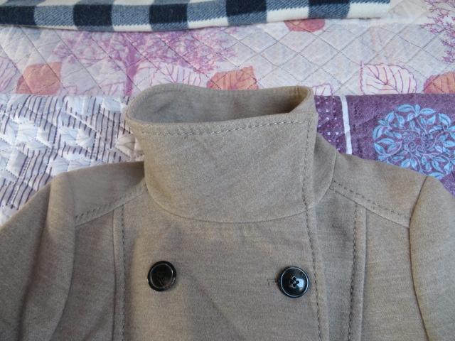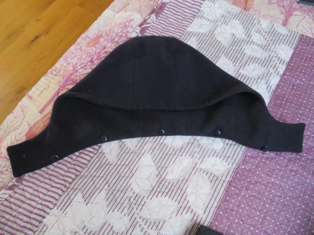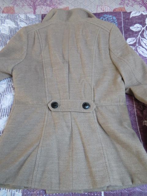 19. Granatowe palto z pikowanymi dodatkami. Palto z pojedynczym ociepleniem, zapięcie za metalowe guziki, kaptur przypinany na guziki. Rozmiar 38 (w biuście 2x48 cm, długość od ramienia 96 cm, długość rękawa od ramienia 64 cm. Materiał: 40% wełna. Kolor granatowy, ciemniejszy niż na zdjęciach a pikowane dodatki mniej kontrastowe. Cena - CW 30,00 zł, KT 40,00 zł