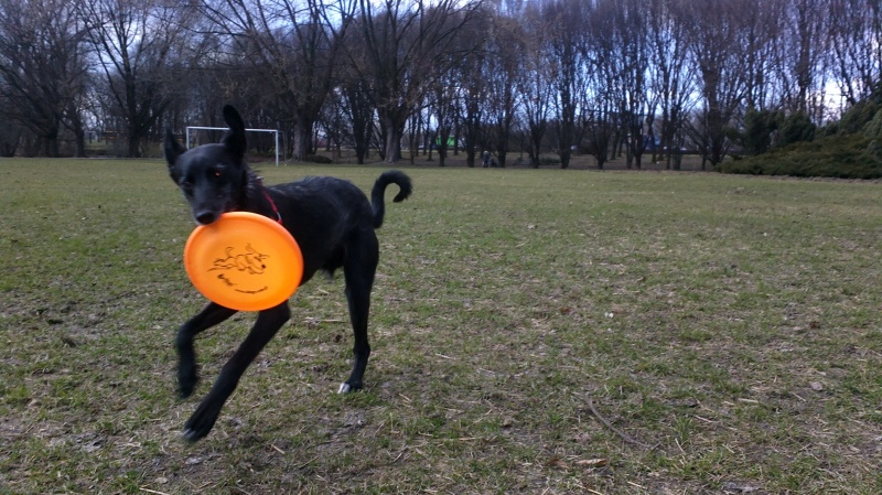 Chciałam Wam jeszcze pokazać Muszkę z frisbee :) Parę słów wyjaśnienia :) żeby czasem nikt sobie nie pomyślał, że zmuszam „biedną” trójłapkę do biegania i aportowania, nic z tych rzeczy :) Muszka ma tyle energii, że sama się tego domaga, a bieganie za dyskiem podpatrzyła u dwóch border collie, których czasem mamy okazje spotykać :) Nie miała wtedy jeszcze tyle odwagi, żeby się przyłączyć do nich, ale po krótkiej obserwacji, zaczęła (oczywiście na bezpieczną odległość) biegać razem z nimi za tym dyskiem :)