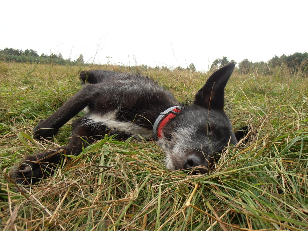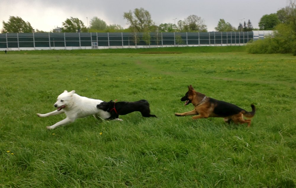 Wielki sukces Muszki :) od soboty wszystkie swoje potrzeby toaletowe załatwia na dworze, teraz jak się załatwi to siada i czeka na nagródkę :) Spacer jest wciąż jeszcze troszkę stresujący, ale już nie tak bardzo jak na początku, z dnia na dzień widać poprawę. Wcześniej miałam wrażenie, że spacer to dla niej jakieś zło konieczne, a teraz zaczyna być dla niej przyjemnością :) jest bardziej "rozluźniona", zaczyna brykać, biegać :) otoczenie już ją tak bardzo nie przeraża, nie boi się już tak bardzo obcych psów. Jest coraz lepiej :) Teraz uczymy Muszkę zostawania samej w domu, wyszliśmy raz na próbę na 15 minut i ledwo się drzwi zamknęły a muszka już udziela "koncertu". Nagraliśmy ją, żeby zobaczyć jak się zachowuje i po kilku minutach było lepiej, jej "śpiew" nie był już tak intensywny, ale jeszcze się trochę udzielała, najgorsze jest to, że cały czas siedzi pod drzwiami i żaden smakołyk ją wtedy nie interesuje. Druga próba była chyba jeszcze gorsza, bo było więcej "śpiewania", więc teraz się uczymy zostawania samej w drugim pokoju (tak jak przy otwartych drzwiach czasami potrafi zostać, to przy zamkniętych zaczyna od razu "śpiewać"). Już widzę jakiś malutki efekt w tych króciutkich próbach zamykania Muszki, także mam ogromną nadzieję, że małymi kroczkami uda nam się pokonać lęk Muszki. Muszka bardzo polubiła pobliski park :)