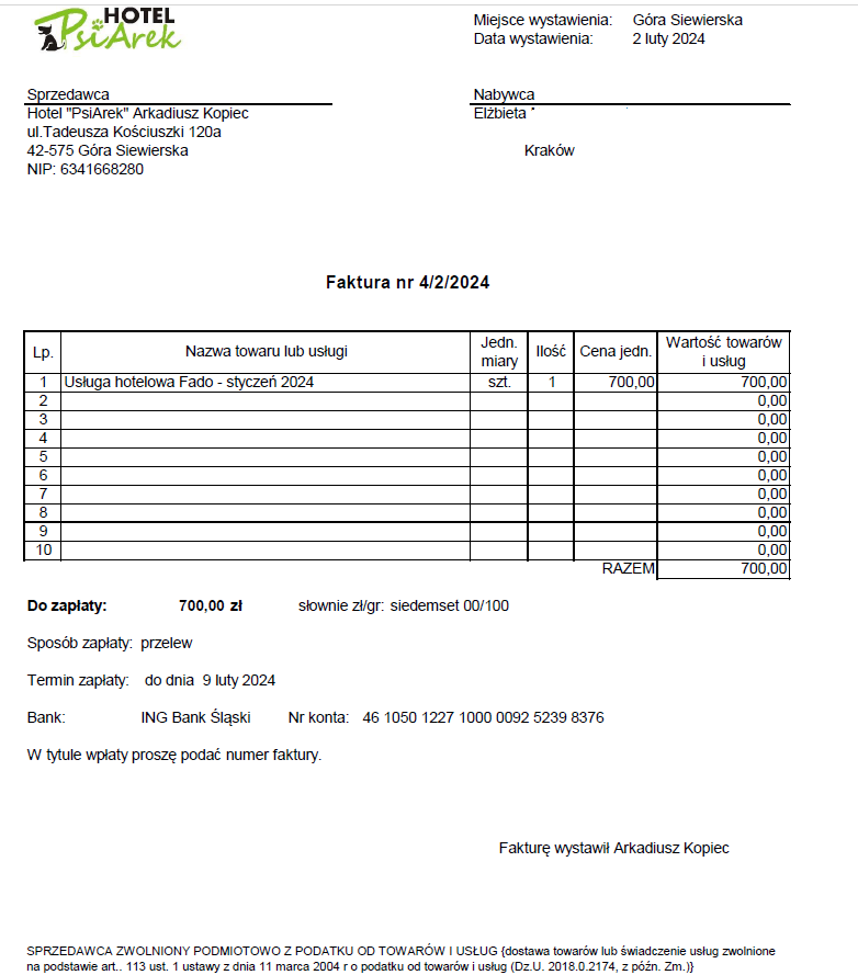 Na Konto Fado wpłynęły poniższe kwoty: 100,00 zł od Rodzinki Aleksa I - 29.01. 100,00 zł od MALWA I-II - 29.01. Bardzo serdecznie dziękujemy