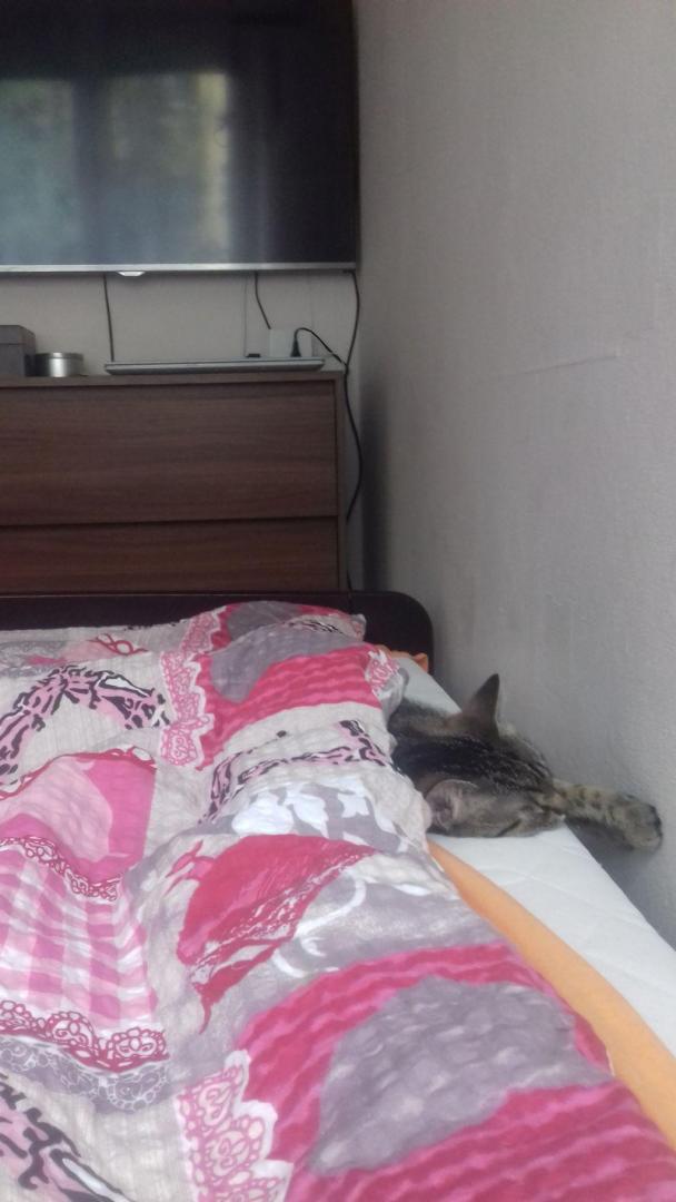 Już opowiadam jak się mają moje panny :) Pierwszego dnia u mnie były przerażone , schowały się i koniec, zero jedzenie nic kompletnie. Dzisiaj mamy 5 dzień i tak : wcinają jak szalone - zarówno mokrą karmę, jak i suchą. Kurczaczek i szyneczka też są spoko. A smakołyki...także na pewno nie schudną u mnie ;) Co ciekawe mają osobne miseczki na mokrą karmę a i tak najpierw razem wyjedzą z jednej a dopiero potem zabierają się za drugą . Taka sama sytuacja z kuwetą - były dwie ale obie upodobały sobie jedną kuwetę :) Widać że siostry :) Obie znalazły sobie swój schowek w łazience pod prysznicem i tam mają bazę wypadową. Ja ich stamtąd nie ruszam niech mają swoje miejsce gdzie czują się bezpieczne. Pierwsze dni głównie tam spały wychodziły w nocy. Ale teraz już w ciągu dnia wychodzą zaczęły się bawić załatwiają się też w ciągu dnia nie tylko nocą. Także ja widzę ogromne postępy. Mam wrażenie że dom już opanowały. Teraz czas na opanowanie mnie, ale to troszkę potrwa. W ciągu dnia są jeszcze nieśmiałe - przychodzą już blisko mnie ale jak np wstanę z kanapy Zuzia profilaktycznie znika w bazie a Zosia obserwuje. Ja dalej nie podchodzę do nich za blisko, staram się nie ingerować w ich strefę bezpieczeństwa. Same muszą się odważyć..ale nie jest łatwo oj nie jest. Tak bardzo bym je chciała wyprzytulać ale wiem, że to musi wyjść od nich. Także się obserwujemy , rozmawiamy i czekamy :) Ale za to w nocy....dobrze że mieszkam na parterze bo by mnie sąsiedzi wyklnęli :) To w nocy są dwa szatany :) Punkt godzina 19 zaczynają się zabawy. Myszki piłeczki latają po całym domu. Zuzia bardzo lubi parapety i tam szpieguje otoczenie. Zosia udaje że jest grzeczna a nagle słyszę jak skacze z półki na książki na podłogę. Przy okazji podchodzą bliżej mnie ...Zuzia niby bardziej ale za to Zosia jakby chętniej....zobaczymy która się pierwsza odważy. W nocy jak śpię tzn udaję że śpię Zosia potrafi przyjść i położyć się w nogach u mnie, Zuzia natomiast chodzi po mnie i mnie wącha. Na razie nie reaguje żeby się nie wystraszyły, ale traktuję takie zachowanie jako mój sukces wychowawczy :) A na koniec HIT :) W moim domu o godzinie 4 rano rozpoczyna się Grand Prix Formuły Kociej w wyścigu na odcinku 15 metrów w przedpokoju :) To odcinek prostej od drzwi wejściowych do drzwi balkonowych. Wyścig kończy się mniej więcej o 6 rano zmęczeniem Kociaków. W tej ciszy obie ganiają się tam i z powrotem, brzmi to jakby słoń gonił słonia :) Spoko...od kilku dni uważam że 4 rano to dobra pora na czytanie książki - bo o spaniu nie ma mowy ;) Na szczęście mam urlop . Resumując moje małe wypracowanie dziewczynki już czują się myślę jak w domu. Pięknie jedzą, żadnych problemów toaletowych, bawią się drapią skaczą. Są jeszcze wystraszone chyba bardziej człowieka niż samego otoczenia. Ale cierpliwie będę czekać aż się w końcu przełamią. To dopiero 5 dni także bardzo krótko a ja już widzę ogromną różnicę także działamy dalej :) Pozdrawiamy wszystkich serdecznie :) PS Dziewczyny na razie bardzo nie lubią zdjęć także wrzucam tylko takie jakie udało mi się pstryknąć :)
