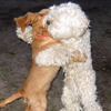 Hej, dzieki za szybki odzew. Niestety, robi to w obojgu przypadków. Przy nas próbuje wszystko zjesc (nawet obiad z talerza... // lodówkę potrafi otworzyć.... ) Zostając sam potrafi wyjąć daną książkę z półki... i zjeść :P Nie wspomne już o agresji do innych psów, które były tutaj nim się przeprowadziliśmy... razem z moją dwójką psów.... są jeszcze takie 4 wiejskie sztuki :), które przy nim są wzorem zachowania... Drugi mój piesek, a dokładniej suczka... mimo, że ma dopiero 10 miesięcy zachowuje się naprawdę dobrze. Co prawda szczeka pozostawiona sama, ale robi już coraz większe postępy (staram się ją nauczyć pozostawiać samą na sposób, coraz to dłuższych pozostawień). Do innych psów zachowuje się OK. Raczej to te 4 pieski czasami nie potrafią odebrać jej zaczepek, w celu zabawy, ale to delikatne spięcia.... Hmmm :)