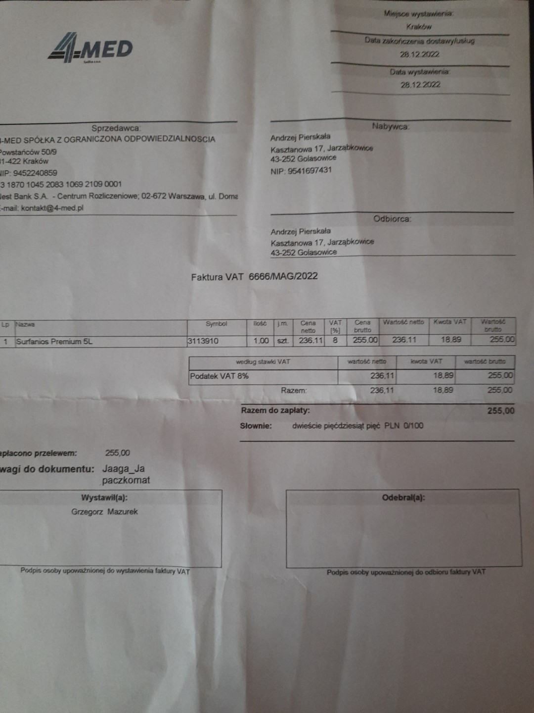 Dziekuję, potwierdziłam w rozliczeniu na pierwszej. Dziękuję za potwierdzenie, cieszę się, ze roślinki sie podobają. poczekaj, kiedy zaczna kwitnąć Dziekuję za potwierdzenie Jeszcze raz dziękuję bardzo za udział w bazarku. Bez wpłaty Nesiowatej wpłynęło na zwierzaki 214, 61 zł. Zakupiłam już 5 l. preparatu do dezynfekcji Surfanios Premium za 255 zł. Brakującą kwotę 40,39 zł odliczę na wątku Lindy, bo to przy niej zużywam najwięcej chemii.