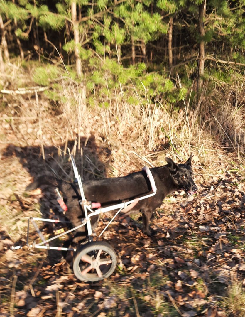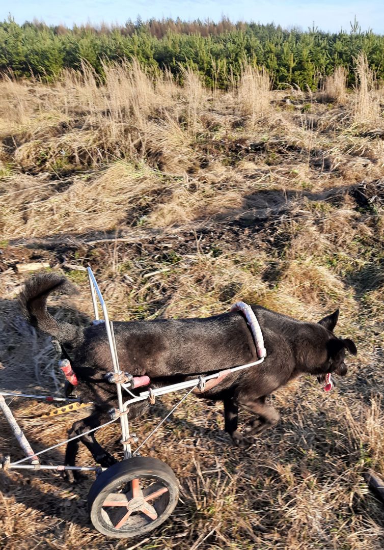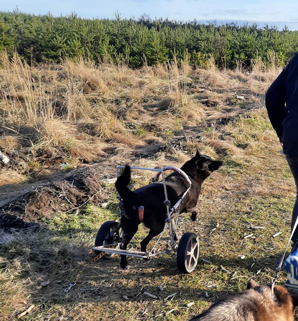 Nie mamy, jeździmy samochodem aż pod Orzesze. U nas mało lasów i zapuszczone. Tylko na spacery od wiosny do jesieni i na sprawne psy. Dlatego jeździmy tam. Lasy są piękne, drogi szerokie, Linda bez problemu sobie sama radzi. Minusem jest to, że mieszczą się w aucie tylko dwa psy. I w bagażniku lindowy powóz