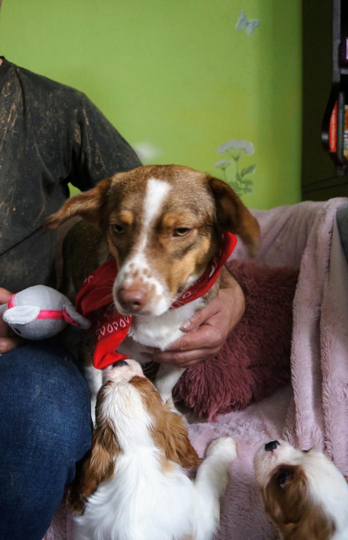 Tak, ku wzajemnej radości. I Pola i małe były sobą bardzo zainteresowane. Zresztą maja podobnie towarzyskie usposobienia. Wykazują takie same pokłady energii. Małe dziś już miały gości, ale jak widać zapału wystarczyło im i na Polę. -