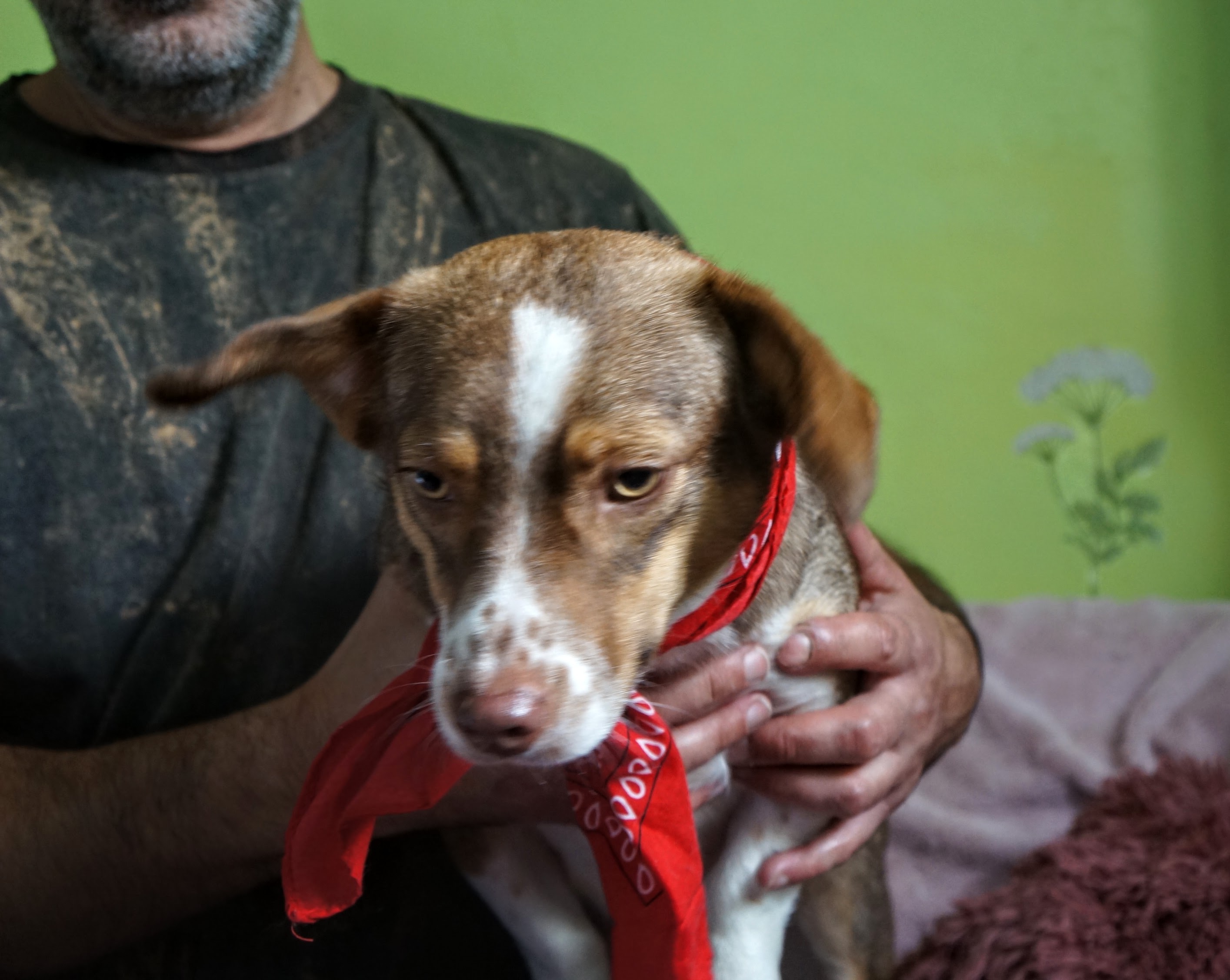 Dziś Grey dał się pogłaskać i podrapać za uchem. Jest przekochany, skrzywdzony, a chce zaufać. Trudno pomysleć, że taki pies doznał urazu na skutek którego byc może stracił wzrok. Ledwo nas słyszy, to biegnie.