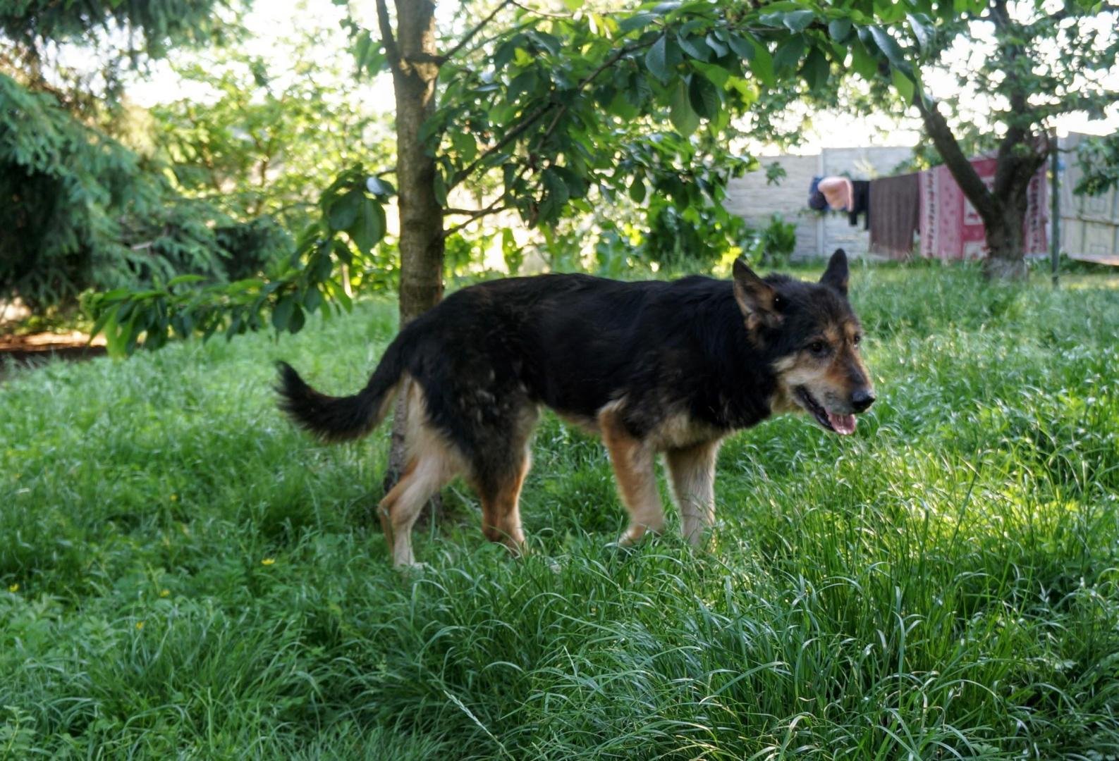 Wikary jest miłym, starszym psem. gdyby nie Aska7 nie wyszedłby nigdy. Byłam zaskoczona jego wielkością na żywo, bo na zdjęciach wydawał się masywnym średniakiem. Jest bardzo zaniedbany, wymaga kapieli leczniczej pielęgnacji. Pod zlepioną moczem, kałem, brudem i łojem sierścią ma ślimaczące się rany. Głowę całą w przełysieniach z blizn.