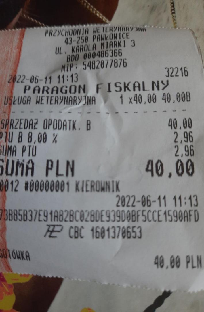 Nie, miał sprawdzanne uszy, węzły, odruchy neurologiczne. W sobotę nie przyjezdza kurier. Musi mieć tez mocz wysłany do laboratorium. Mieszkam na wsi, Pawłowice to tez wieś, wiec cieszę się niezmiernie, że i tak mam przychodnie czynna co dzień, gdzie jest nowe usg, rtg i nie muszę umawiać terminów. Moja mama w Katowicach musi termin umówić nawet na pobranie krwi , nie przyjęli jej z chorym psem na to badanie "z marszu". Najważniejsze, że już czuje się dobrze i zachowuje normalnie.