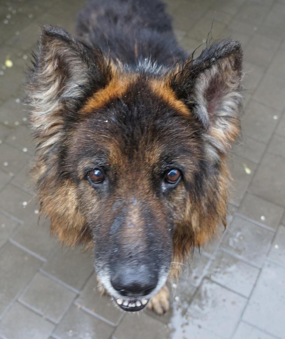 Rozi, oczywiście. Już zaczal z Andżelą oszczekiwać psy przez ogrodzenie wybiegu. Ona poszła do domu, on do budy na wybiegu, a Wenie zamknęliśmy kojec na wszelki wypadek. Ten pies mial mega depresję. Jak szłam do niego ostatni raz z jedzeniem , żeby zwabić go do budy, to podskakiwal nawet za mną. Jakby został podmieniony za psa, którego leżącego wyciągaliśmy na kocu w trójkę z auta. On ma wyleżoną na płasko sierść na jednym boku, do tego ulepioną plackami kału. Musial długo nie wstawać i załatwiać się pod siebie. Pierwsza kupę zrobił bardzo cuchnącą, potem kapał kroplami luźnego kału. Aska7 mowila, ze w czasie drogi kaszlał. Chodzi krok w krok za człowiekiem. W schronisku został opisany jako 5 -latek, ale to chyba jednak zaniżony wiek. Zęby ma lepsze niż Andżela, ale źrenice juz starszego psa. Został wykastrowany w schronisku w grudniu 2020 r. i ma ciekawe imię w książeczce- Zew. Pamiętam, jak byłam ciekawa, dlaczego Baryton tak się nazywa. I potem po czterech godzinach szczekania każdej nocy, stwierdziłam, że imię dobrane idealnie. Jutro zapoznam go z psami, ale nie przyjęły go gościnnie. Raczej na zaznajomienie ze świnką i ptactwem nie mam co liczyć. Ma to samo bystre spojrzenie, co Andżela.