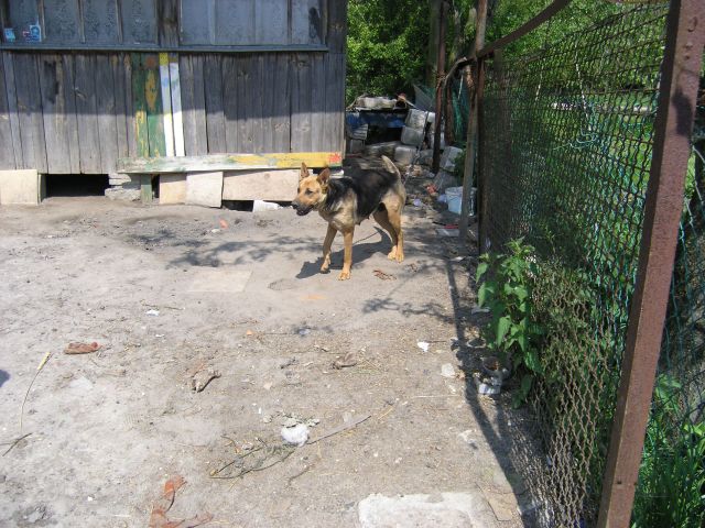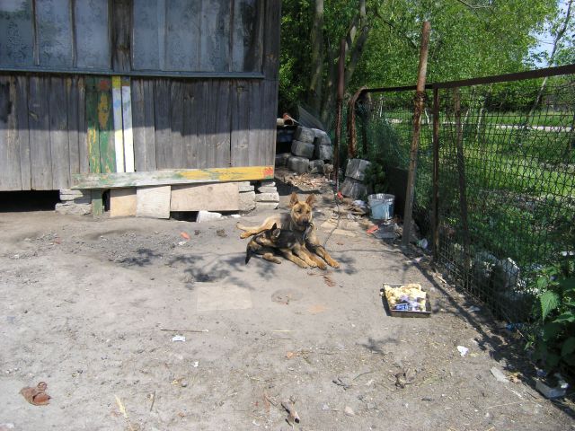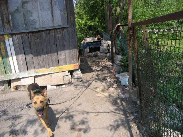 14. Sąsiadka prosi mnie o pomoc dla rocznej ONkowatej suczki z łańcucha,która w wieku 10 miesięcy została mamą 10 szczeniaków. Nie przez przypadek została, właściciel celowo ją dopuścił,aby móc sprzedawać szczeniaki... Tak też uczynił, sprzedał 9,jedną suczkę zostawił sobie, aby za kilka miesięcy mogła urodzić małe,które również sprzeda... Suczka-mama rodziła na łańcuchu, na łańcuchu karmiła małe, na łańcuchu spędziła większość swojego życia. I tak pewnie wyglądałoby jej c a ł e życie,gdyby nie łapała kur i kaczek,ale ona łapie i zjada,więc zapadł na nią wyrok. Poszłyśmy dzisiaj do tej meliny, mam zdjęcia,ale brakuje mi pomysłu,jak suczce pomóc. Ta kupa pustaków w głębi,to jest buda, w której urodziła i karmiła szczeniaki. Tam mieszka.