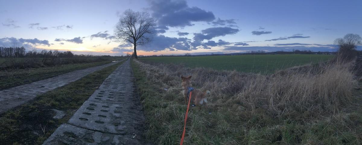 Spacer z w towarzystwie innych psów za nami. Było bardzo miło i owocnie. No i solidna dawka ruchu - chodziliśmy około 1,5 h. Toffi przez pierwszą połowę spaceru szedł jako ostatni i jak to on - śpiewał i piszczał do kolegów z przodu. Ale po jakichś 20 min zaczął się przyzwyczajać i nabierać pewności siebie - zamiast wariować, zajął się węszeniem i od czasu do czasu my odwracaliśmy jego uwagę. Drugą połowę spaceru szedł w środku (jeden pies przed nami, jeden za nami) i nawet całkiem fajnie ogarnął tę sytuację. Oczywiście bez cudów - nadal ciągnie na smyczy, nadal mocno się ekscytuje, ale widać poprawę i co najważniejsze, w wielu momentach udaje się nad nim zapanować. Był też moment, że pies za nami go zaczepiał szczekając, a Tofik to zignorował. Była też zabawa w tropienie pojemniczka ze smaczkami schowanymi w lesie, po śladzie opiekuna. W kolejną środę znów idziemy na taki spacer. Cieszymy się bardzo, że trafiliśmy na szkołę dla psów w Stegnie - nie musimy nigdzie jeździć, a sama prowadząca - Pani Justyna - wydaje się naprawdę kompetentna i fajnie animuje czas :).