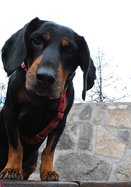 Melutek coraz lepiej, z czasem pokonuje kolejne lęki. Zdarza jej się np. przykucnąć i niespodziewanie zrobić siczek w miejscu w którym jeszcze z 2 miesiące temu by się w życiu nie wysikała (bo go nie zna, bo za daleko od domu, bo jakieś podejrzanie straszące, bo, bo, bo). Moja mama, która nie ma jej na co dzień, mówi, że Melanka bardzo się zmieniła. Sami widzimy, że zmiana jest duża. Np. jeszcze kilka miesięcy temu jak coś ją przestraszyło albo się zestresowała to potrafiła być zepsuta przez min. całą dobę. A ostatnio jak wracaliśmy do domu i już pod blokiem byliśmy to jakiś debil z naszego osiedla strzelił ze śrutówki. Łomot był ogromny, Melan się przestraszył - ogon podkulony, wzrok obłędny, uszy stulone. Ale już jak czekaliśmy na windę zaczęła odpuszczać i wyluzowywać (z małą moją pomocą ;)) Dawniej w ogóle nie byłoby z nią kontaktu przez przynajmniej kilkanaście minut. Czyli generalnie jest dobrze! A duzi? Duzi niestety mają cała masę kłopotów, większych i mniejszych.Życie nadal na nas uwzięte i nie odpuszcza od kilku lat. Ale jakoś dajemy radę. Mam troszkę fotek, muszę zacząć sukcesywnie wrzucać. Dzisiaj trzy. Widac na nich dobrze, jaka jasna plamka zrobiła się Meli na nosie. Kilka miesięcy temu była tyciutka, z czasem powiększa się coraz bardziej, pojawiąją się kolejne. Zaczynam podejrzewać bielactwo...
