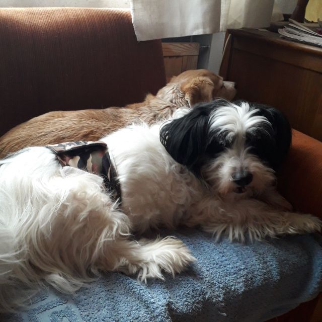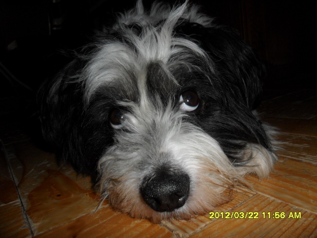 Lolo wprawdzie na chodzie, ale marudny. Może Go boli ? Za to z apetytem zjadł mięsko z ryżem i rosołkiem. Dzisiaj nie kaszlał. Tak, dostaje Enrotron a ten odwadniający to Libeo. Doktor mówił że po tych 10 dniach się zobaczy czy zmodyfikować dawkę albo całkiem odstawić. Mam Lolusia obserwować. Pokerku, a jak się minerały uzupełnia u psa? Jestem zielona w temacie psiej kardiologii. Strasznie się dzisiaj zdenerwowałam, jak Lolusia leczyć,bo ja przecież mało mobilna jestem, ale potem pomyślałam że przecież diagnostykę można zrobić tu w B-b, a konsultacje ewentualnie e-mailowo. Sama nie wiem ? Aaaa...ma jeszcze wyczyszczone ząbki i obcięte pazury. Lolo sprzed 10 minut;