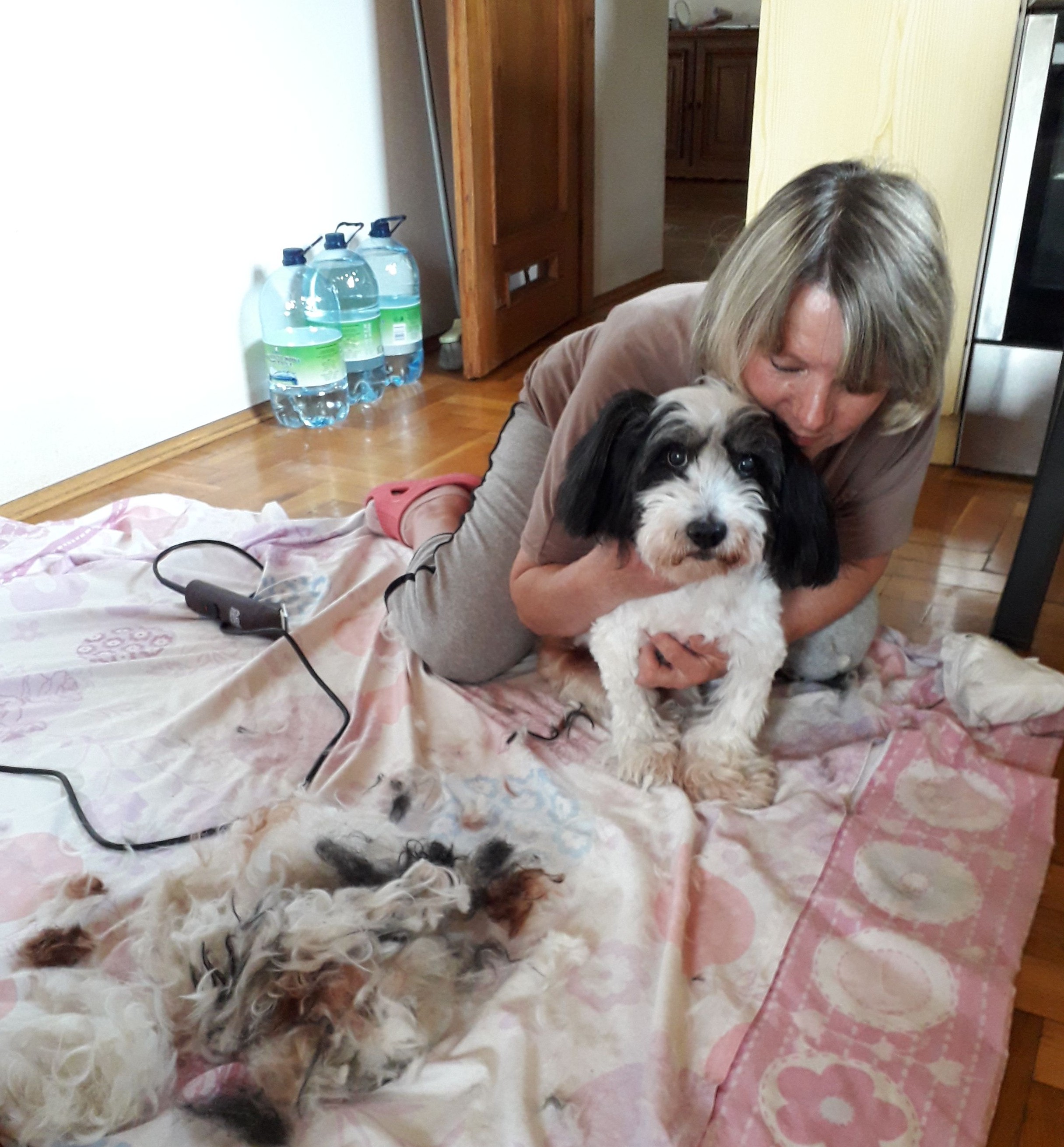 Wiele dobrego spotkało Lolusia ( i mnie) w miniony dłuuugi weekend. Przyjechała Ciocia Ona03, mamusia zastępcza jakby. Z Krzysiem przejechali w sumie 800 km. , by wytulić zasiuranego, starego psa. Lolo łaskawie pozwolił sobie na zrobienie nowej fryzurki , manicure i jest teraz taki Oneczkowy elegancik. A jak już Lolo zotał uporządkowany, Oneczka z Krzysiem zabrali się za mój równie stary ogród. Z wrażenia nie zrobiłam zdjęcia, widząc Iwonkę balansującą bez trzymanki na czubku 12m. choiny. Krzyś zadbał o trawsko i takie tam techniczne sprawy . Wierzyć się nie chce, że są jeszcze na Świecie tak cudowni ludzie. Empatyczni, wrażliwi, dobrzy. Piękni. Iwonko, Krzysiu, brak słów by Wam za wszystko podziękować.