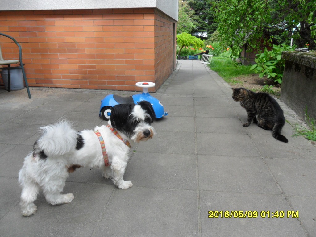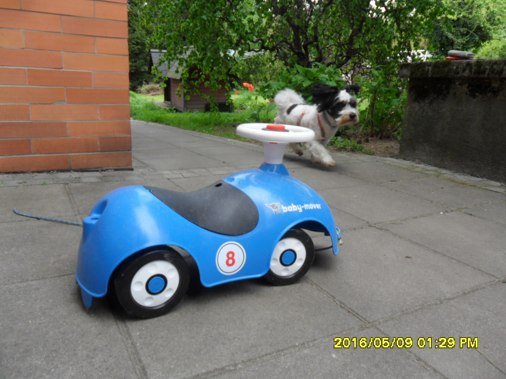 Nie kracz.... Sama jestem zdziwiona. Lolo to taki mamisynuś raczej . Dzisiaj jak tylko nos wyścióbił poza bramę, dostał taki op...., że zmykał w podskokach do domu.