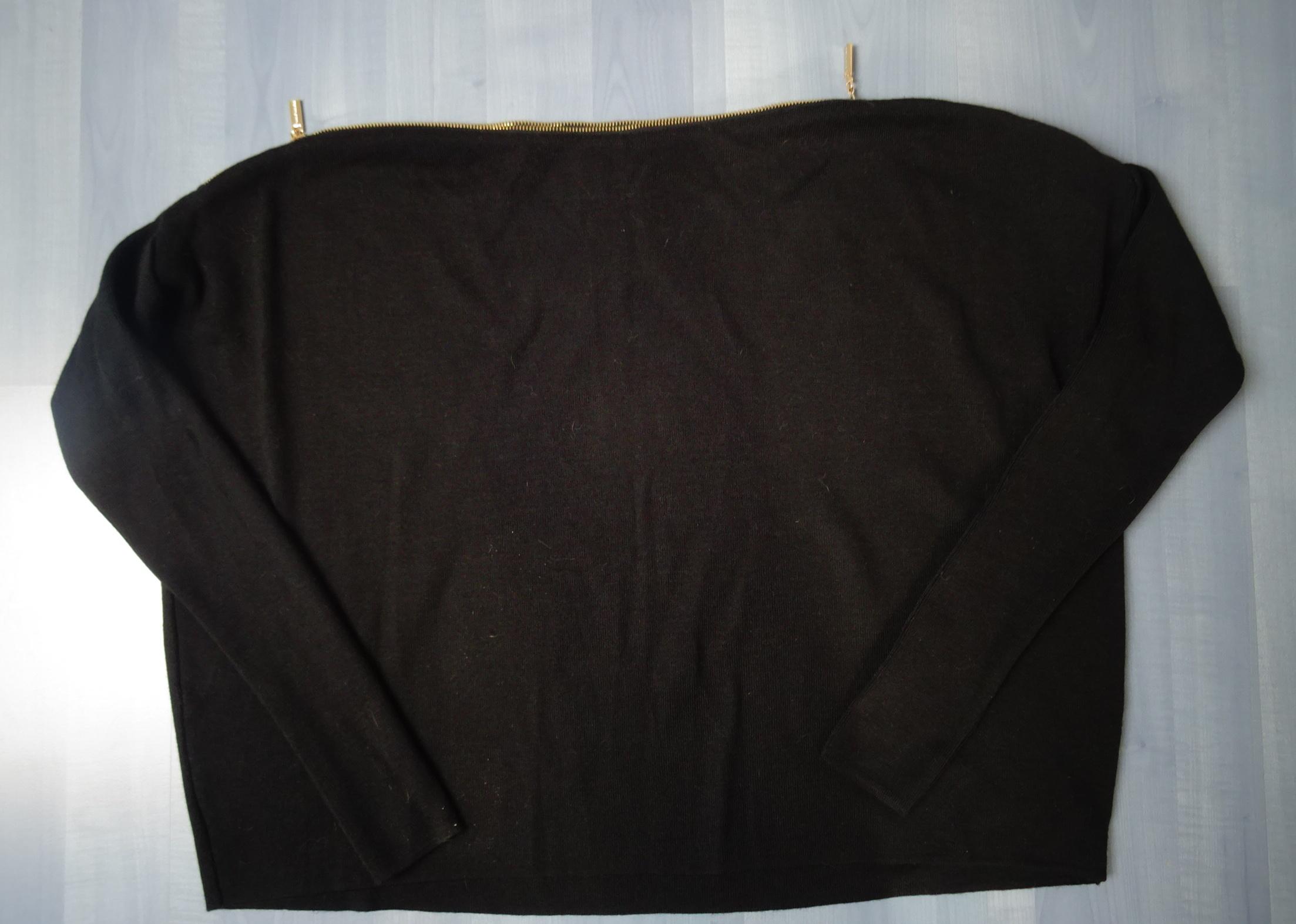 4. Dość gruba bluza o wyglądzie swetra, nie ma składu, ale wygląda na bawełnę z domieszką, stan bdb., r. XS 5. D.cherri, dżinsy dość rozciągliwe, stan bdb., r. 38 CW 15 zł ona 03 CW 6. SPRZEDANY MANGANO, włoski, grubszy sweter, 50 % wełny, bardzo miły w dotyku, ramiona opuszczone, zamki od dekoltu schodzą na rękaw, stan bdb, r. 44, ale na szczupłe rammiona CQ 12 zł Gruba Berta KT za 18 zł