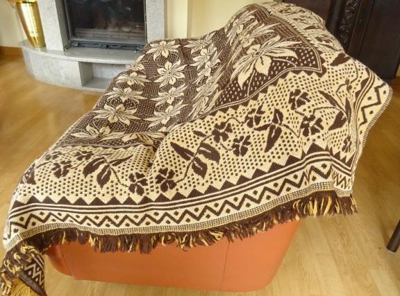 Narzuty dostałam od naszych przyjaciół. Są nieużywane, przeleżały w zakamarkach domu mamy jednego z nich. 1. Narzuta na kanapę i 2. na fotele, bez metki, ale wygląda na wełnę albo z jej domieszką. Solidne, w stanie bardzo dobrym, dwustronne. Wymiary narzuty na kanapę: 184 bez frędzli x 138 cm na fotel : 138 x 53 cm bez frędzli CW za komplet 70 zł na fotel, tez dwustronna