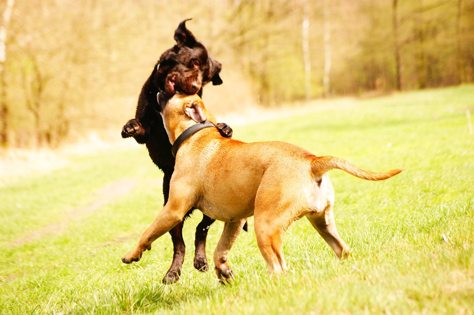 Brando się potwornie boi Leona. Leon jak go widzi to od razu atakuje, a Brando się broni... zębami. Bo tak to Brando go omija szerokim łukiem i sam by do niego nie podszedł. Najpierw zachowywał się jakby go coś bolało.. Myśleliśmy, że brzuch. Np jeden dzień było źle, na drugi było dobrze... Po jakimś czasie zaczął dziwnie głową trząś, ale w tym czasie normalnie kontaktował. Myśleliśmy początkowo, że padaczka... Wet od razu bez niczego stwierdził, że problemy z kregoslupem odcinkiem szyjnym, ale ze on za bardzo się na tym nie zna, to mamy się udać do specjalisty, on jedynie rtg może zrobić. Zrobiliśmy zdjęcie, kręgi wszystkie ok, więc na pewno dyski. Pojechaliśmy na nastawienie. I pies jak nowo narodzony. Ale już nie może szaleć tak jak szalał. Zero szarpania, aportowanie też bardzo ograniczone. Najlepiej luźne bieganie bez szaleństw. Ostatnio się trochę zapomnieliśmy, minęło 7-8miesiecy od pierwszego nastawienia i teraz w sobotę byliśmy znowu. I tak w wieku 5 lat Leon stał się emerytem rencista.