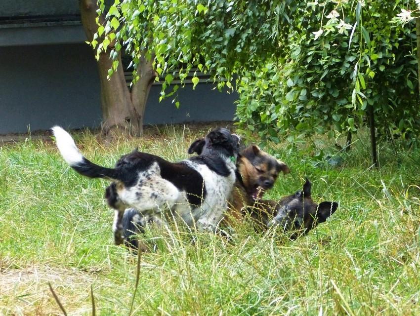 15. Teraz tak. Na początku był upartym, nieokrzesanym, głośnym buntownikiem. W ramach protestu niszczył i wokalizował. Już wolę zniszczenia, niż hałasy. Głowa mi pękała, inne psy były podrażnione, rodzina narzekała... Trzeba było to przetrwać. Początkowe relacje z psami też były inne - suczki kojarzył tylko z seksem, chłopaków unikał i patrzył niemiłym wzrokiem. Przeprowadzka z parteru na piętro była strzałem w dziesiątkę. Kontakty z moimi wesołymi, zabawowymi suczkami bardzo pomogły. Misio zrozumiał, że oprócz spraw seksualnych, istnieją takie przyjemności jak zabawa. A dalej poszło... Misio się rozkręcił i zgrzeczniał. :-) Są psiaki, które nie są w stanie zaakceptować ani suczek, ani psów. Są też takie, które potrzebują czasu na zmianę nastawienia.