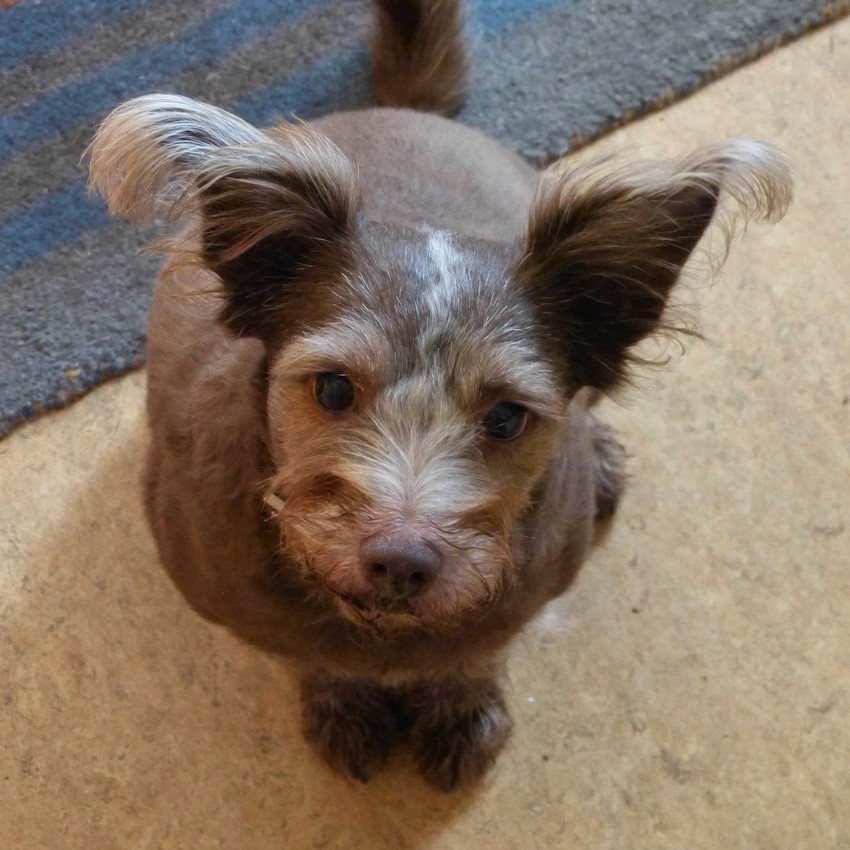 Nie potrafię wymienić ocząt. ;-) Lekki zez i melancholijne spojrzenie to nie tragedia. ;-) A tak na serio, to przynajmniej nie ma przerażenia w oczach. Po pojawieniu się Kiku patrzy po prostu z wyrzutem. Nie liczyłabym na szybką i cudowną metamorfozę w przypadku Hiltonka. Trzeba się cieszyć z drobnych zmian i postępów. Nie można mu stawiać poprzeczki za wysoko. Hiltonek jest mocno zamknięty w sobie, łatwo ulega stresowi i wpada w panikę. Na stres reaguje rozwolnieniem, sikaniem pod siebie, czy gryzieniem jak to miało miejsce w poprzednim domu tymczasowym. Jestem trochę zaskoczona jego stosunkiem do innych psów. Nie wiem, co się wydarzyło, że ma lękowe reakcje w kontaktach ze swoim gatunkiem. Kiku zawsze była świetną terapeutką, a w przypadku Hiltonka nie ma osiągnięć. -