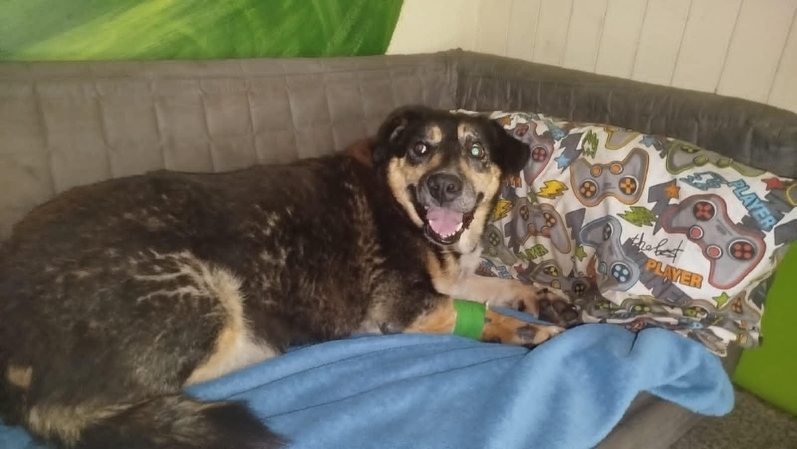 Wiadomości z wczoraj: Hej, dziś mamy pięć kroków w tył, co widać na załączonych obrazkach - reakcja na moją obecność . Rano leżał na kanapie, tak jak go na wczorajszych zdjęciach widziałaś, pozbierałam miski, coś tam ogarniałam i było jak zwykle- patrzył, nie przejawiał chęci chowania się, ale jak poszłam do nich parę chwil temu, to zaczął uciekać...Nie zjadł wczorajszej kolacji, nie tknął nic...Jak przyjechał ogarniał miski do ostatniego okruszka, przedwczoraj zostawił sporo, no ale nie jeden pies czasem nie zjada wszystkiego, zwłaszcza że dostają słuszne porcje. Dziś natomiast miska była pełna i nie wiem czy to przez stan psychiczny, czy będziemy mieć inny problem....Na wszelki wypadek, gdyby dalej nie jadł, umówiłam wizytę na piątek u weterynarza, a co będzie to zobaczymy.... I dalej, na moją sugestię, że on w schronie był silny a teraz to już może nie koniecznie... Bardzo możliwe, zrobimy panel geriatryczny - krew i może USG za jednym zamachem żeby go nie wozić co chwilę...i zobaczymy. W sumie to byłoby jak cud, gdyby po 11tu latach w schronisku, zupełnie nic mu nie dolegało A później było tak - poprosimy pięknie nie krzyczeć na Kasię Maurycy 2 godziny po pierwszej - "gorszej" wersji siebie. Wiem, że wędliny są be i wielu by mnie teraz zlinczowano, ale są sytuacje i sytuacje...