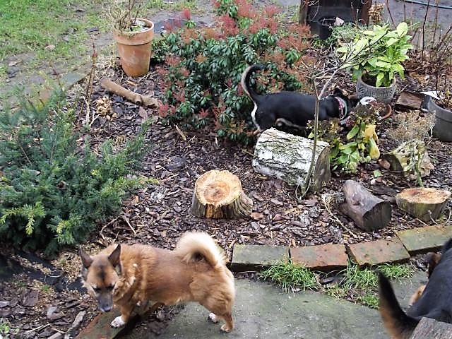 Od nas tak :-) o ile kilka plag egipskich nas nie nawiedzi. Wiosnę mamy w ogrodzie, psiaki dziś szalały, a dwie panny na wybiegu nie chciały wyjść na krok z budy, no Beti zrobiła kroków 10 po pewnym czasie, zawołana przez TZ-a, ale to wsio. Zamiast pobiegać to zady w budzie i koniec. Tuptuś dobrze się bawił z Lady, ganiał jak mały wariat i próbował jej kijek zabrać, bardzo wesoły z niego urwis. -