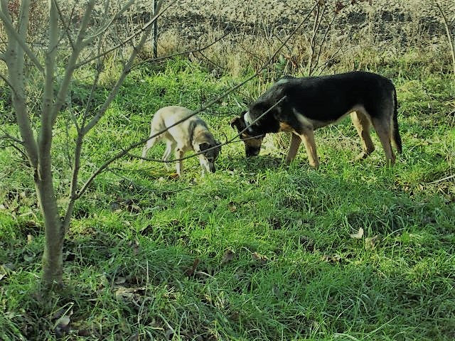 Problem w tym, że one są nieadopcyjne bo wcale im nie pasuje byt z ludźmi. Beti dodatkowo atakuje ludzi. Pola musi być wiecznie na smyczy bo nigdy nie wróci na zawołanie i będzie sobie robiła co jej pasuje, zresztą Beti tak samo. Ktoś był zainteresowany Polą latem, ale chciał psa normalnego, z którym będzie mógł wyjść pobiegać po okolicy bez smyczy, ale pan zrezygnował choć Pola bardzo mu się spodobała. Jak się ma płacenie około 500 zł miesięcznie na wieczność do naszego cyrku i konieczności wybudowania bunkra dla nich? Generalnie zagadnienie jest do głębokiej analizy, a..........Pola dostaje spazmów jak brak Beti. Za to Tuptuś w kwestii sikającej w domu wykazuje poprawę, szału jeszcze nie ma bo znowu wczoraj było dodatkowe pranie dywaników w łazience, ale jednak różnicę widzę. Do obcych dalej jest całkowicie nieufny i nie do opanowania jeszcze. No ok, kilka zdjęć na marne pocieszenie. -