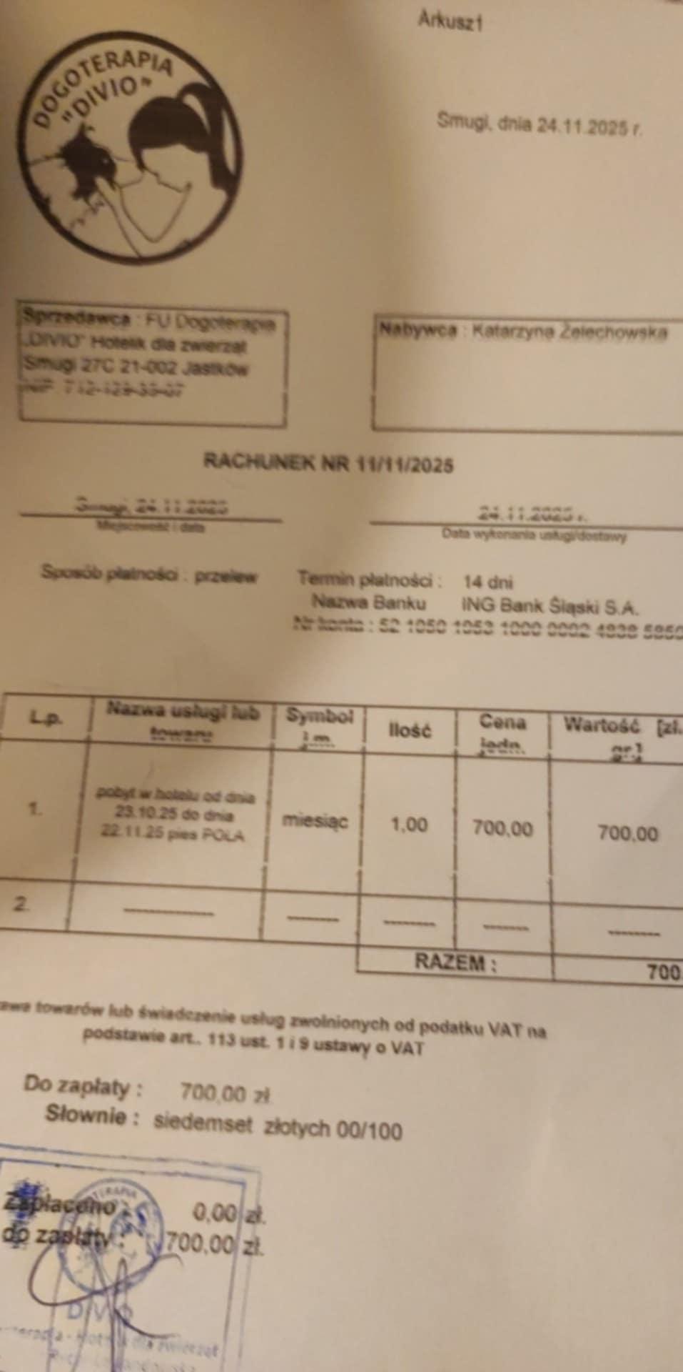 - 50zł - wizyta wet i leki