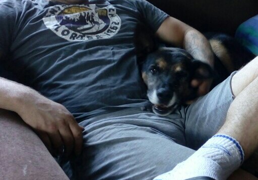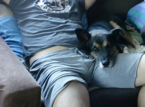 Ignaś trzyma się mimo, że zrobiło się już całkiem całkiem ciepło ....i oczywiście zawsze przyklejony do pańci -