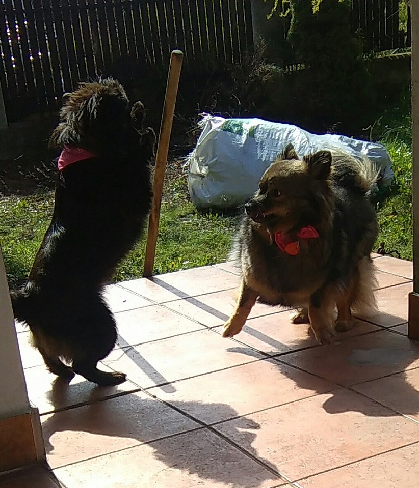 Jeszcze króciutka relacja z porannego czyszczenia dywanów. Kejla w końcu ma z kim się wyszaleć, biegają po ogródku z prędkością światła, ale mała wyraźnie wiedzie prym i już zaczyna Kejlę molestować. -