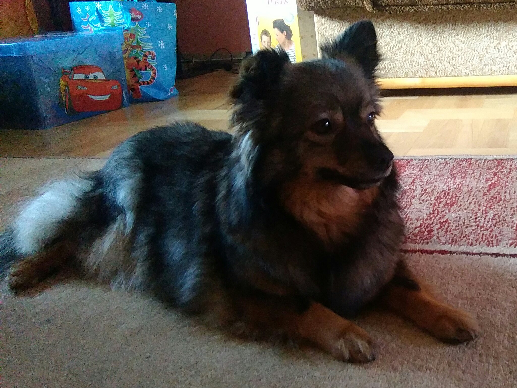 Właśnie dojechaliśmy. Kejla była bardzo grzeczna, cała drogę pięknie leżała. Jest jeszcze oniesmielona ale właśnie zwiedza swój nowy dom. Fafik zdezorientowany, ale awantur nie było więc na pewno się zaprzyjaznia. -