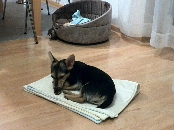 GIGA w DS Trzymajcie kciuki !!!. To już grzeczna sunia.