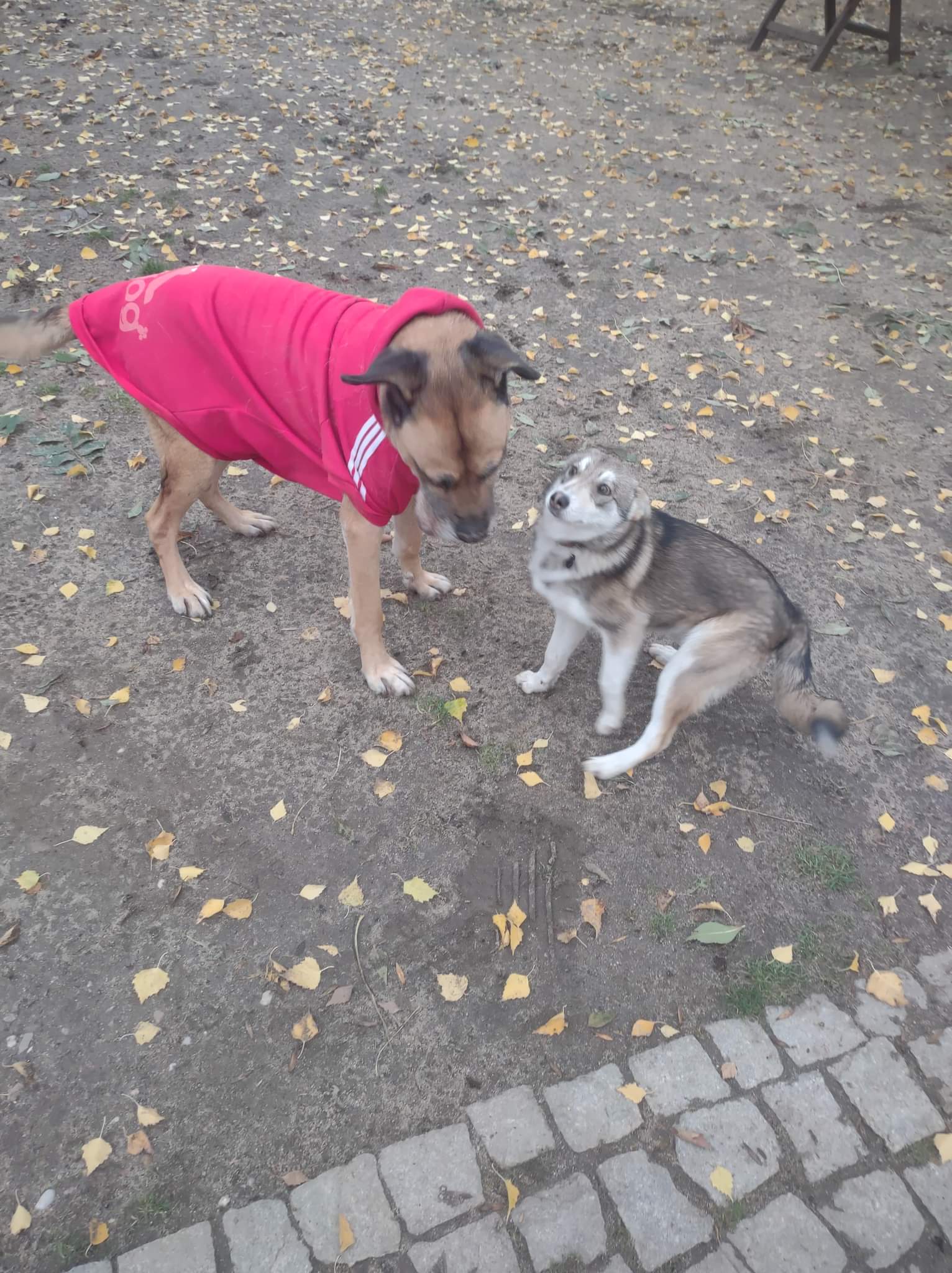 Starałam się unikać kontaktu z dziećmi, bo to jednak nie własne, dlatego też jak wypuszczałam Micha to prosiłam żeby się chowały do domu. Wtedy mój brat z synem zbierał coś na ogródku a ja wypuściłam Micha na Ogród. Nieoczekiwanie oni skończyli robótki działkowe i postanowili wrócić do domu. Musieli przejść przez główny ogród. Jak ich zobaczyłam to już zbliżali się do domu. Bratanek chyba się trochę lękał bo tak trochę nie wiedział co robić jak zobaczył Micha przesuwając się do wejścia, a Michu mógł wyczuć jego strach. Stałam 3 m od nich i zobaczyłam że Michu się zjeżył patrząc na Marka jak na ofiarę powoli zbliżając się do niego. Wyglądało to jak na filmach przyrodniczych , tylko brakowało głosu Czubówny . Ja obserwowałam spokojnie bo nie chciałam wprowadzać nerwowej atmosfery i pogarszać sytuacji. Michu skoczył na Marka i oplótł go łapami i w tym momencie go wyłapałam za kark i odciągnęłam. Michu poddał się od razu a na reprymendę położył się łapami na ziemi z maślanymi oczami. Podsumowanie: myślę że gdyby Michu chciał go ugryźć to by go ugryzł. On chyba sam nie wiedział do końca co ma zrobić. Gdyby nie to że cały był zjeżony to potraktowałabym jego atak jak na piszczącą zabawkę. Może chciał go podporządkować jako słabe ogniwo w stadzie? Generalnie nie jest to pies dla wszystkich, raczej dla stabilnego singla.