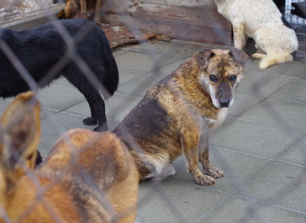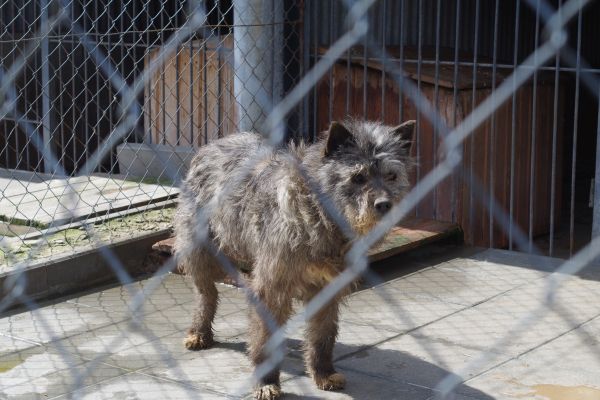 Te dwa psiaki są w boksie otwartym, to ten "senioralny", są osobno, nie w stadzie innych psów: 1. Ten jest od niedawna, starszy pies, nie widzi to ten obija się o siatkę, bo nie zna jeszcze terenu. A ten "skośnooki", też w otwartym, widzi ale ma problem z łapami. -