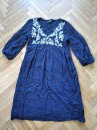 89. Długa sukienka per una rozm. 14 na podszewce bawełna cena wyw. 12 zł 90. Sukienka nowa z metką rozm. 38 wiskoza, cena wyw. 12 zł 91. Sukienka bpc selection rozm 40 kolor bardziej słoneczny, żywszy ale nie rażący; między pachami 49 cm ale przymarszczenia pod biustem w tali 40 cm ale z tyłu gumki długość 133 cm cena wyw. 12 zł